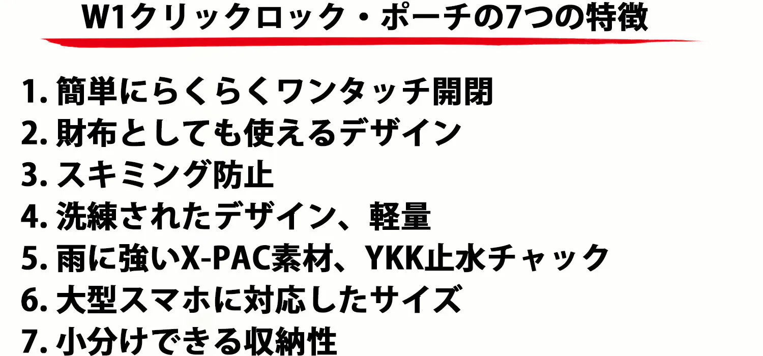 私たちアウトドア・ガジェット大好きなベンチャー企業が、前商品のお声や何度も試行錯誤を重ねた結果、最新作の「W1クリックロック・ポーチ」が完成しました。