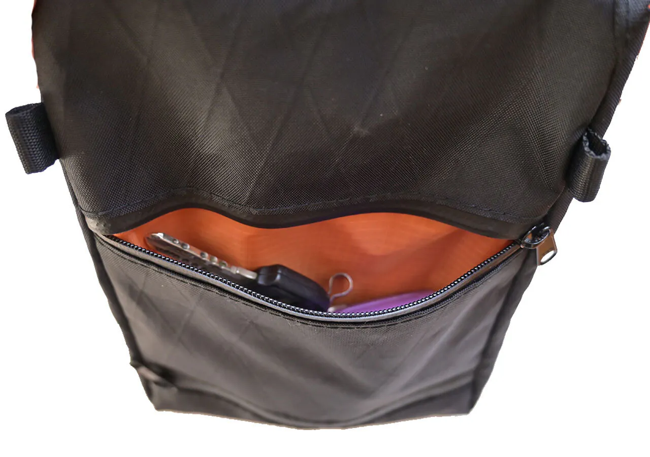 外側の生地はヨットで使われているセイルクロス(帆)を作っているアメリカの素材メーカーのX-PAC(エックス・パック)を採用しました。ヨットの帆に使う技術でこの生地を作っています。生地の特徴として防水性と軽量さに優れており、タウンユースはもちろん、アウトドアでも活躍できます。