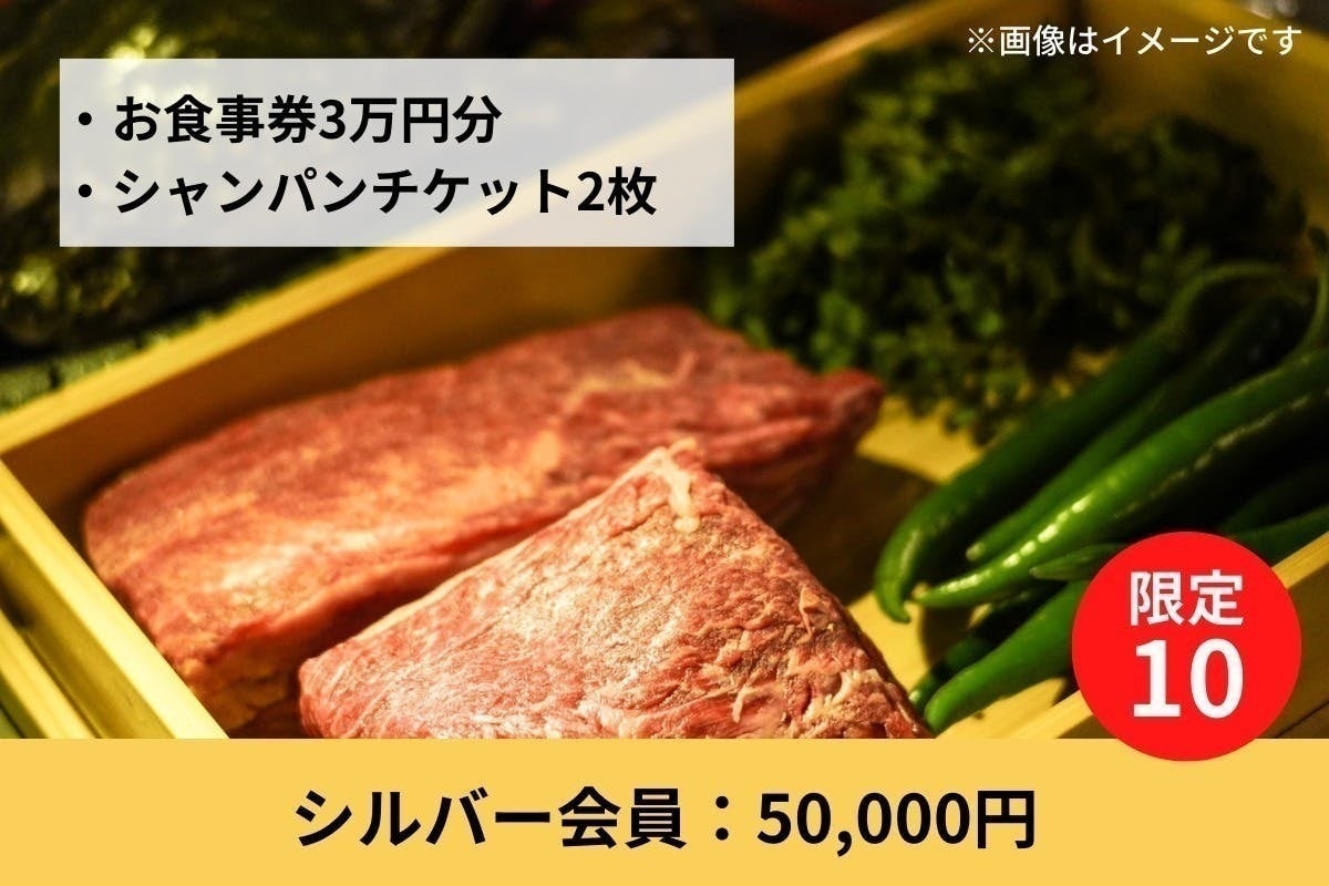 ①BBQお食事券3万円分(税込み、お釣りなし、有効期限1年間)