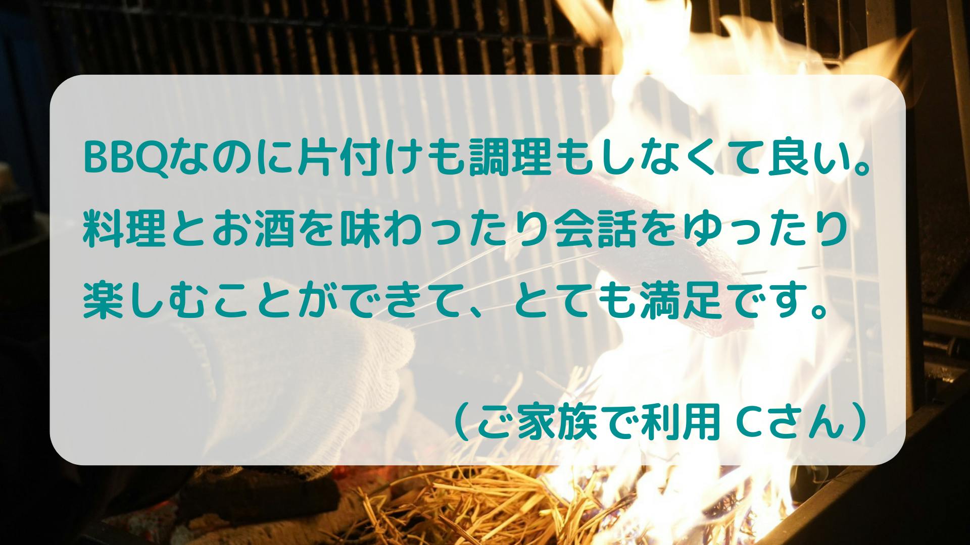 「BBQ」といっても調理はスタッフがおこないますので、ゆったりと料理と会話をお楽しみください。