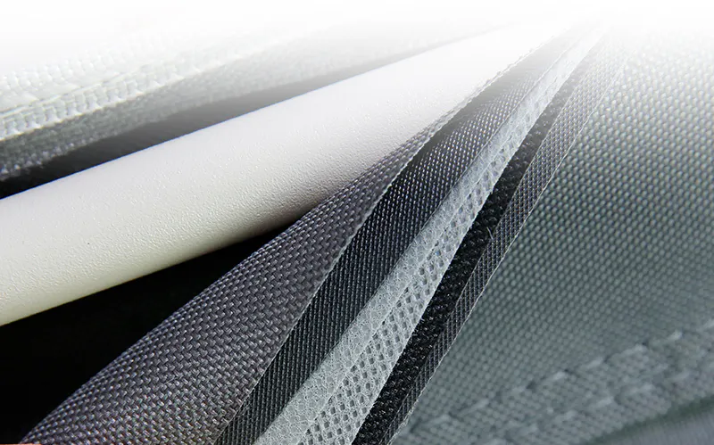 格子状に繊維が縫い込まれ破れたりほつれたりしにくい、耐久性が高く通気性のあるオックスフォード生地を採用しています。