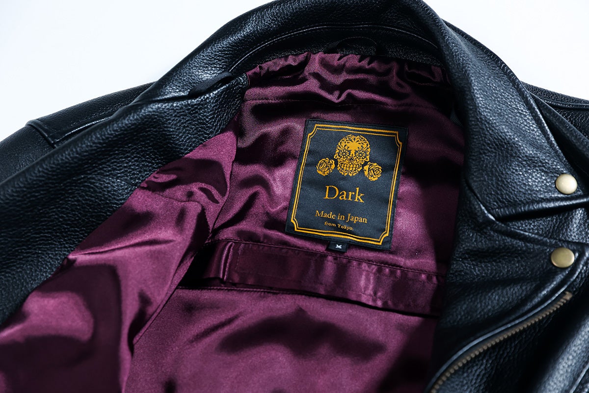 デザインはもちろんのこと、Darkは「バイカー&ライダース」向け。素材には摩耗耐性を付与することを考慮しています。レザー生地はバイクウェア定番のカウレザー。