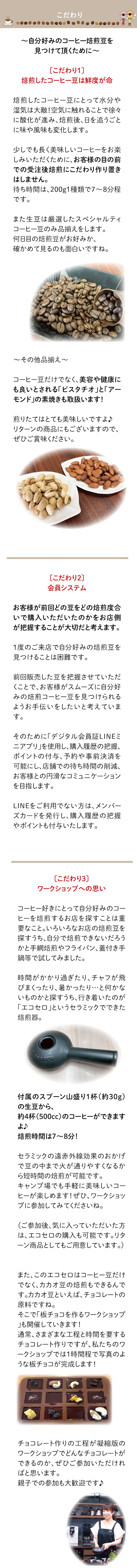 2023/08/16 12:37「コーヒーも鮮度が命」ということをご存知ですか?スーパーなどで購入したレギュラーコーヒーと、焙煎したてのコーヒー豆を粉にしてドリップしていただいた時の風味は格段の違いがあります。焙煎したコーヒー豆は時間の経過と比例して酸化(劣化)し、美味しさは減っていきます…。焙煎後はなるべく早いタイミングで飲んでいただくのがベストです。そこで皆さんにも、ご自宅やキャンプ場などで手軽に焙煎し美味しいコーヒーを飲んでいただけるよう焙煎講座で体験していただければと思います♪「エコセロ」というセラミックの陶器を使用することで、遠赤外線効果から短時間で豆の中まで火が通りやすくなるんですよ。付属のスプーン1杯約30gで約4杯分(500cc)のコーヒーができるんです。ご自身で焙煎したコーヒーがどんな風味になるか、ぜひ体験してみてください。お申し込みお待ちしております。 もっと見る