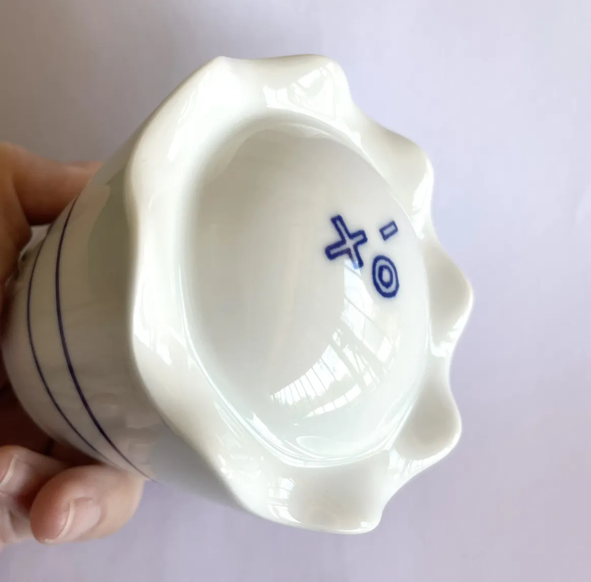 裾の波波に小指を滑り込ませることで持ち上げた時に安定します。