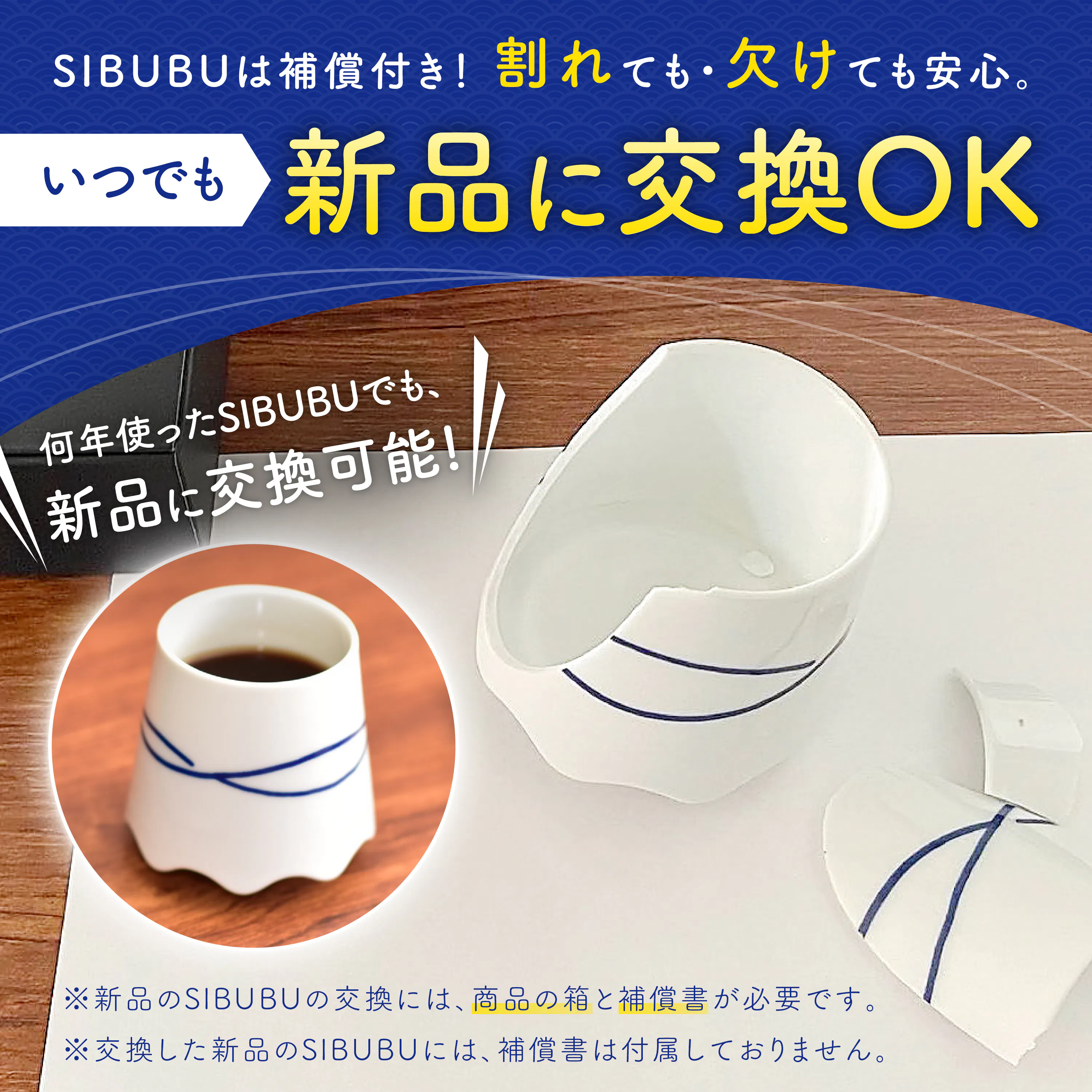 ・交換した新品のSIBUBUには補償書は付属しておりません。