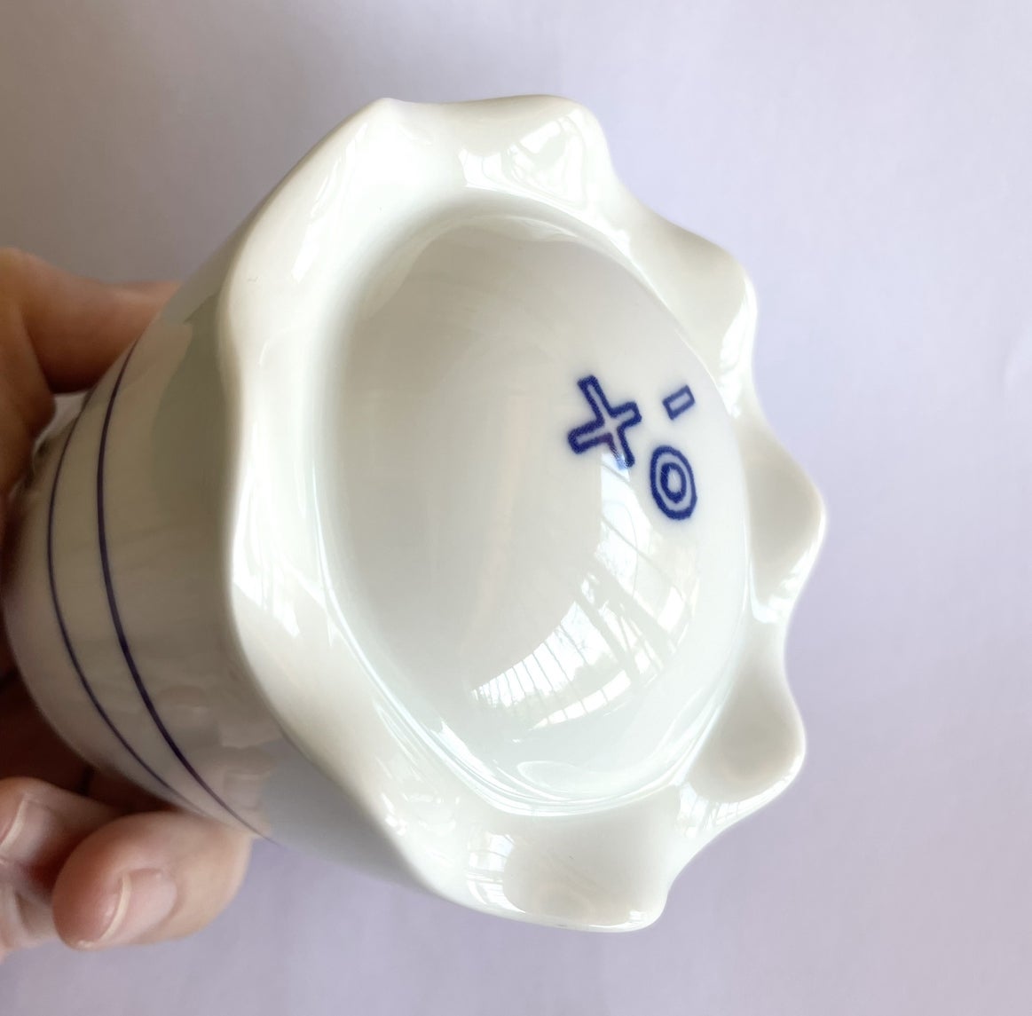 裾の波波に小指を滑り込ませることで持ち上げた時に安定します。