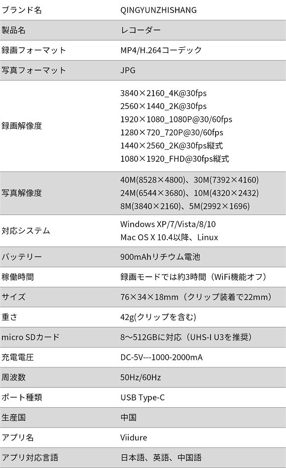 「K68」は手軽に好きな景色を4Kの超鮮明な画質で記録可能な、様々なシーンで活躍する、わずか42g(卵とほぼ同じ重さ)のクリップ式レコーダーです。