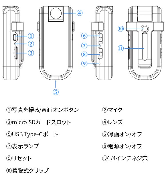 インタビュー・取材:コンパクトで携帯性に優れているので、使いたいときにすぐに取り出して撮影できます。服に取り付けられるクリップ搭載で相手への圧迫感も低減できます。