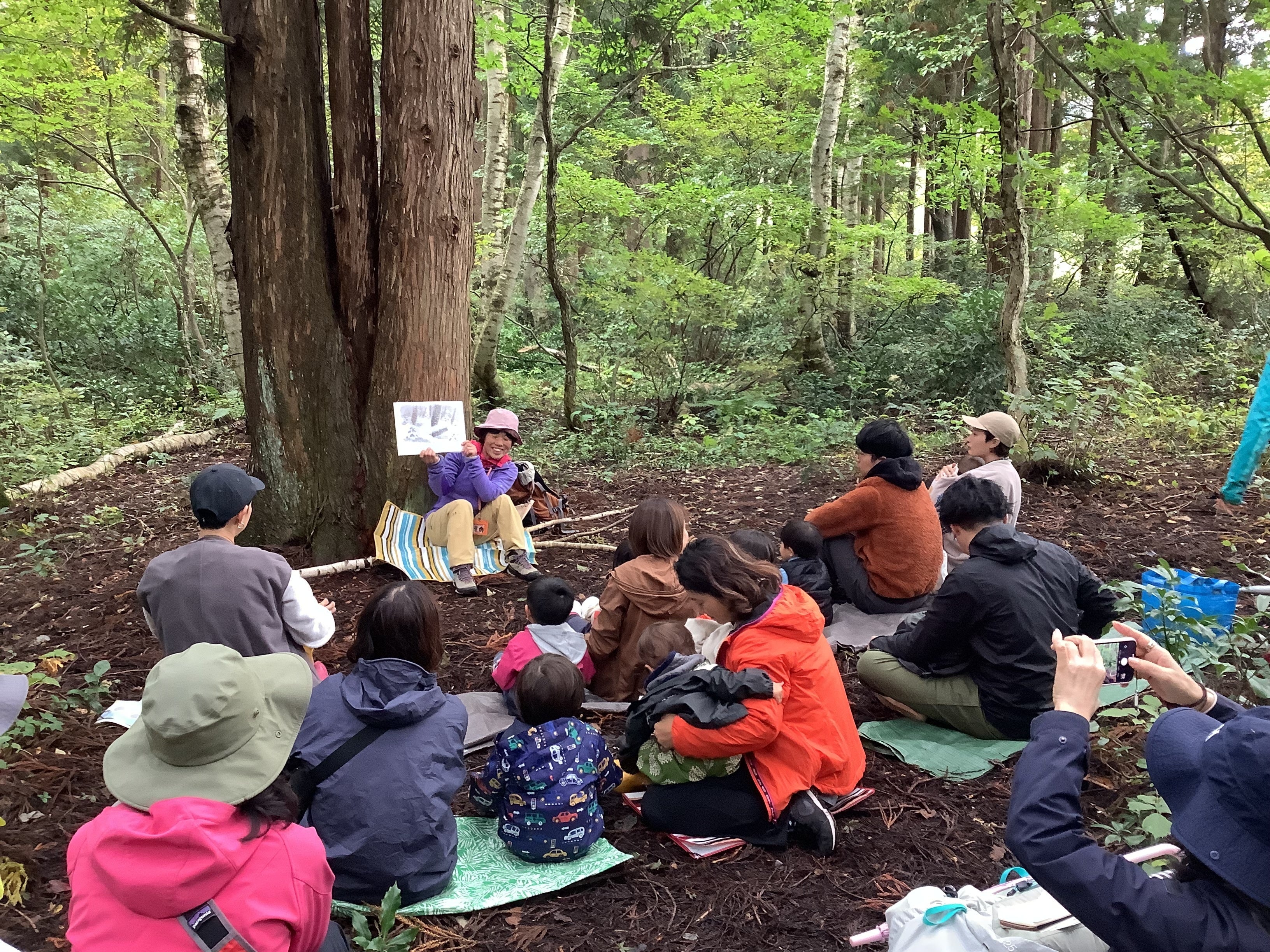 下見の時に降っていた雨も上がり、存分に森とおはなしを楽しんでいただけました。おはなしの中に出て来る森や自然を一緒に楽しんでくれた子どもたちにこの体験が思い出になることを願いつつ無事に終了いたしました。