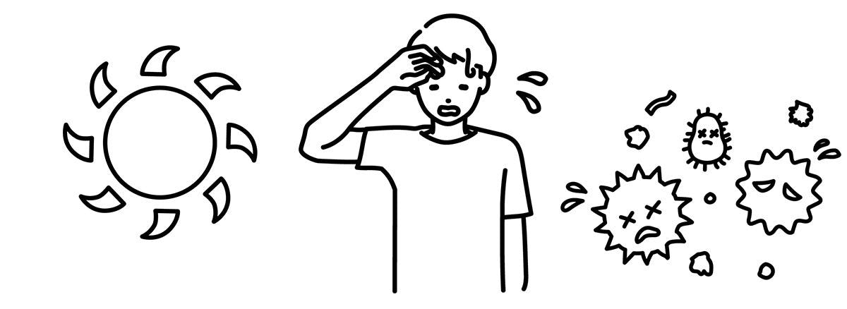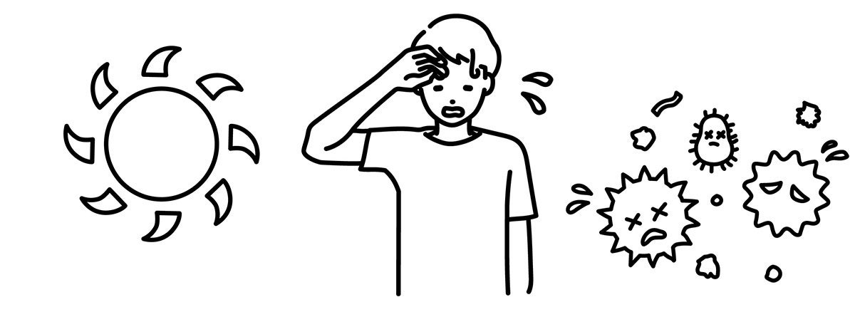 「汗」は体温の調整機能として身体にとって重要ですし、暑さに汗をかくのは仕方がないこと。