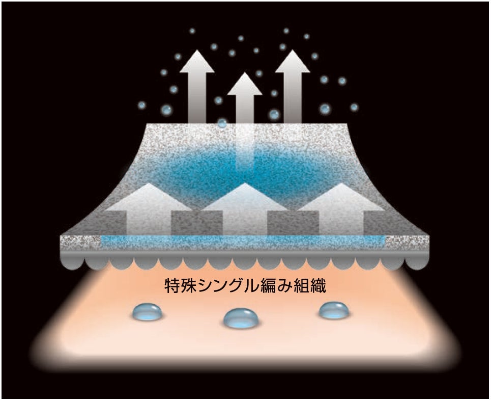 (1)吸汗速乾:汗を素早く吸い取り拡散する吸汗・速乾機能