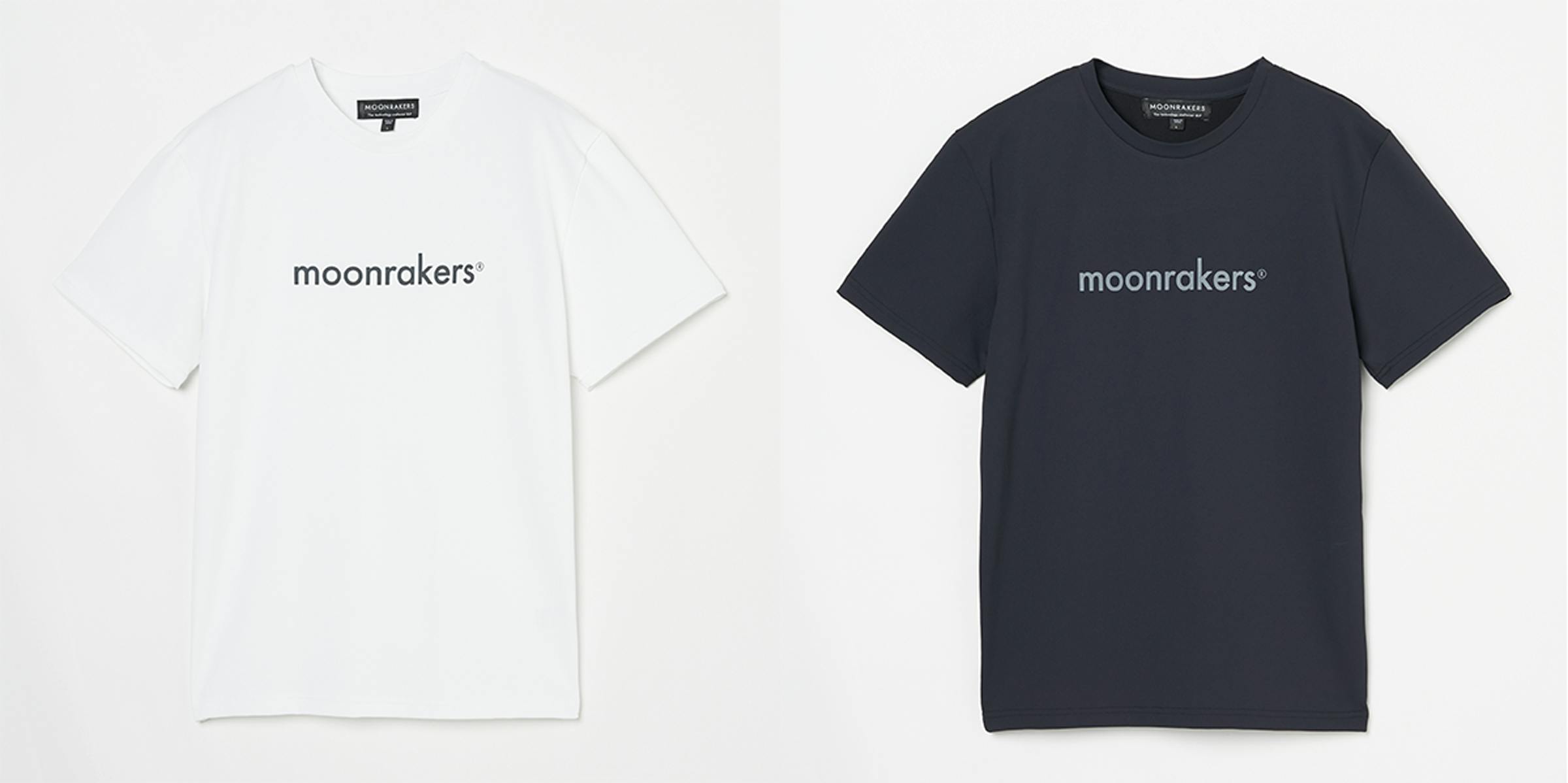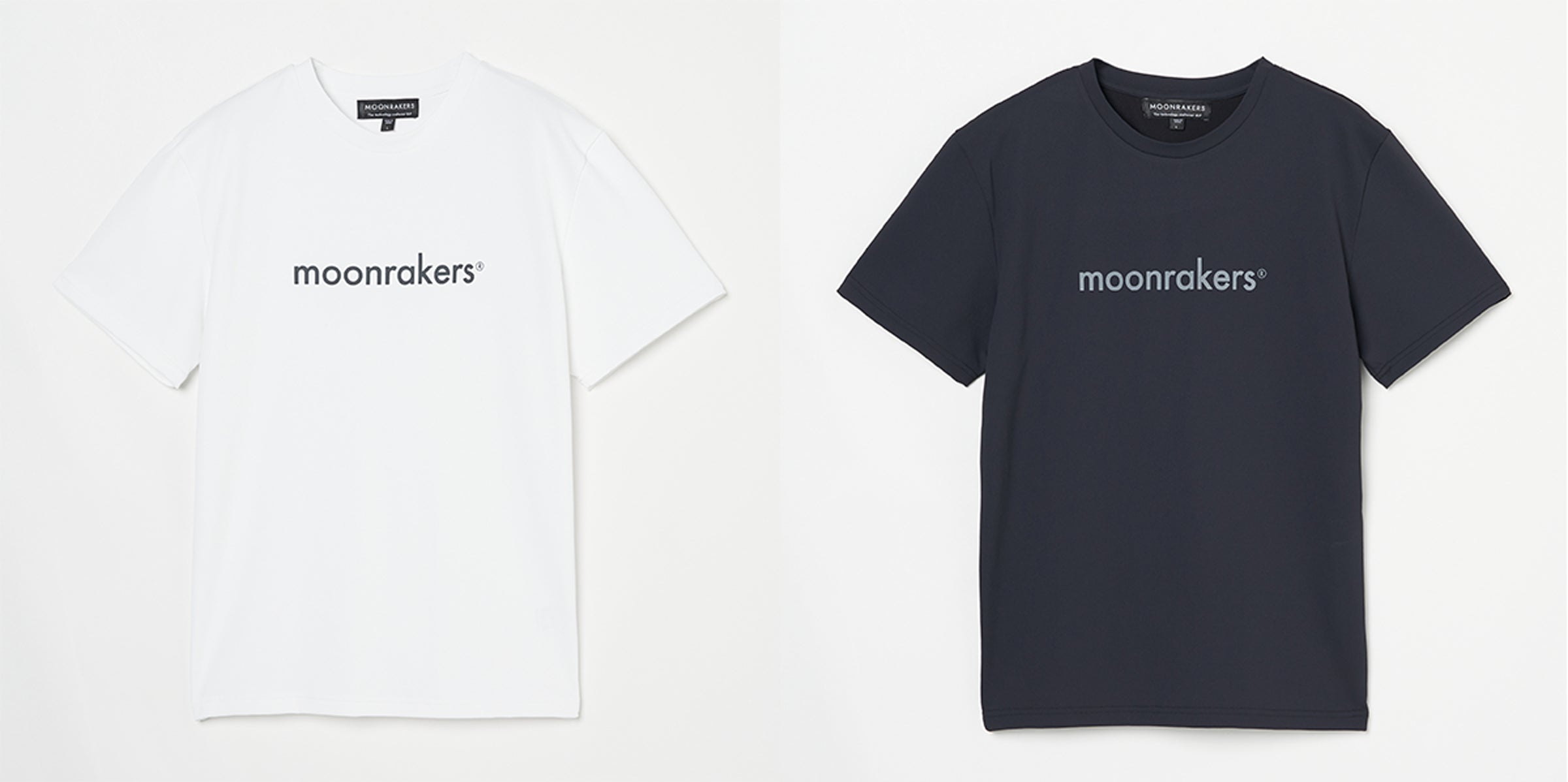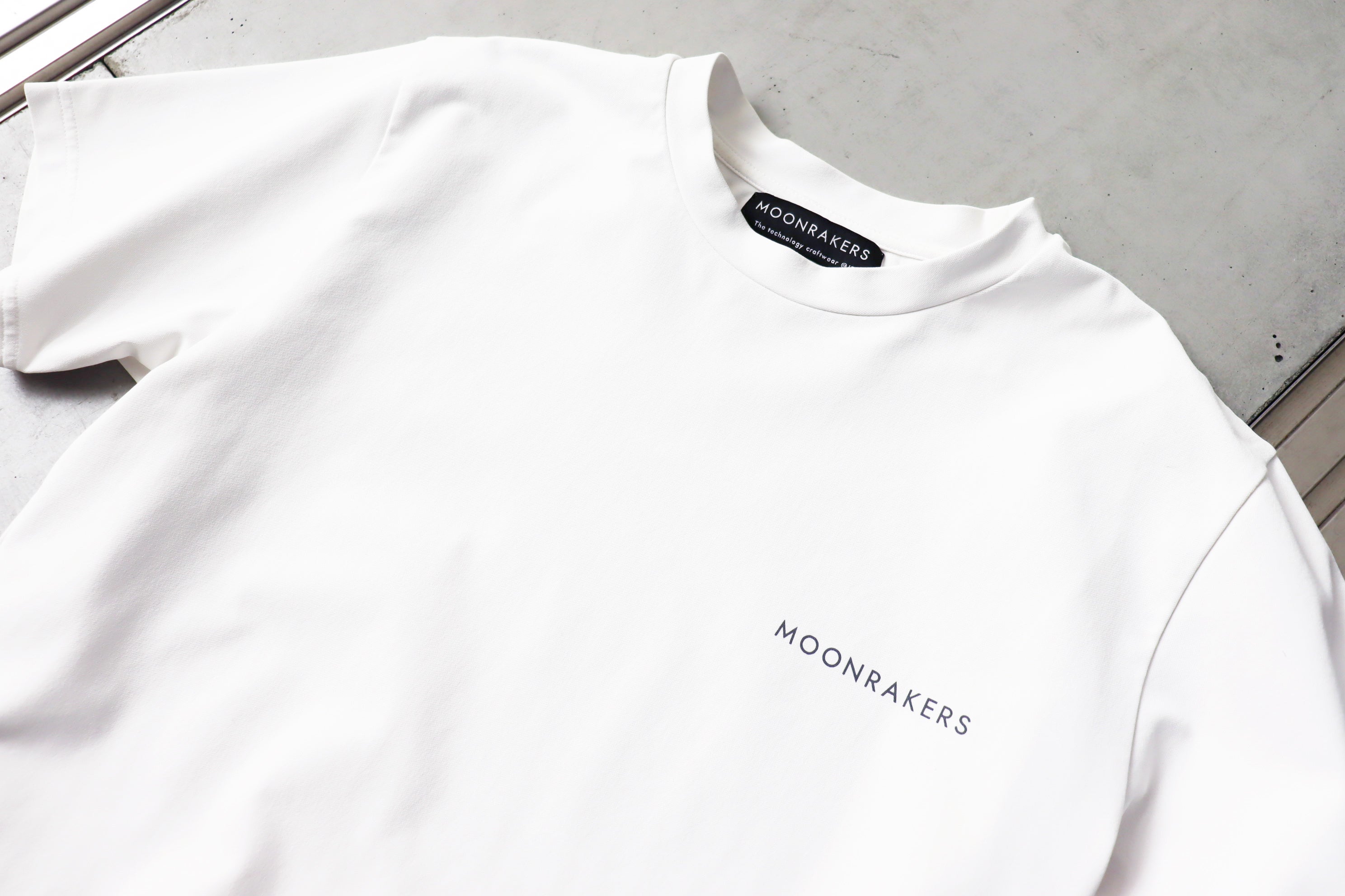 「無地」はシンプル過ぎて使いにくい・・・とのご要望から作成したプリントTシャツは、白・黒の2色に「MOONRAKERS」ロゴを配したシンプルなスタイルの2種類を用意しています。
