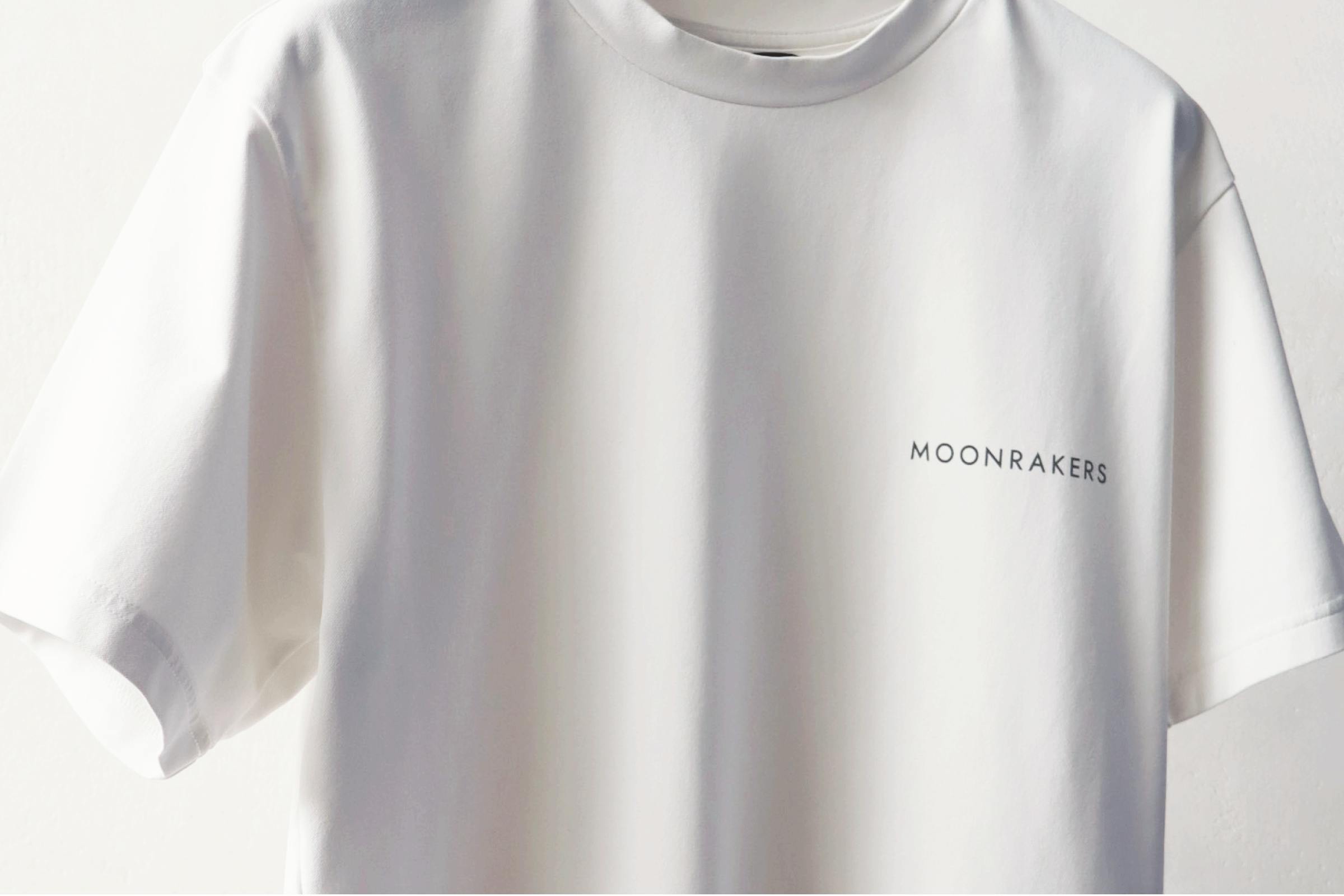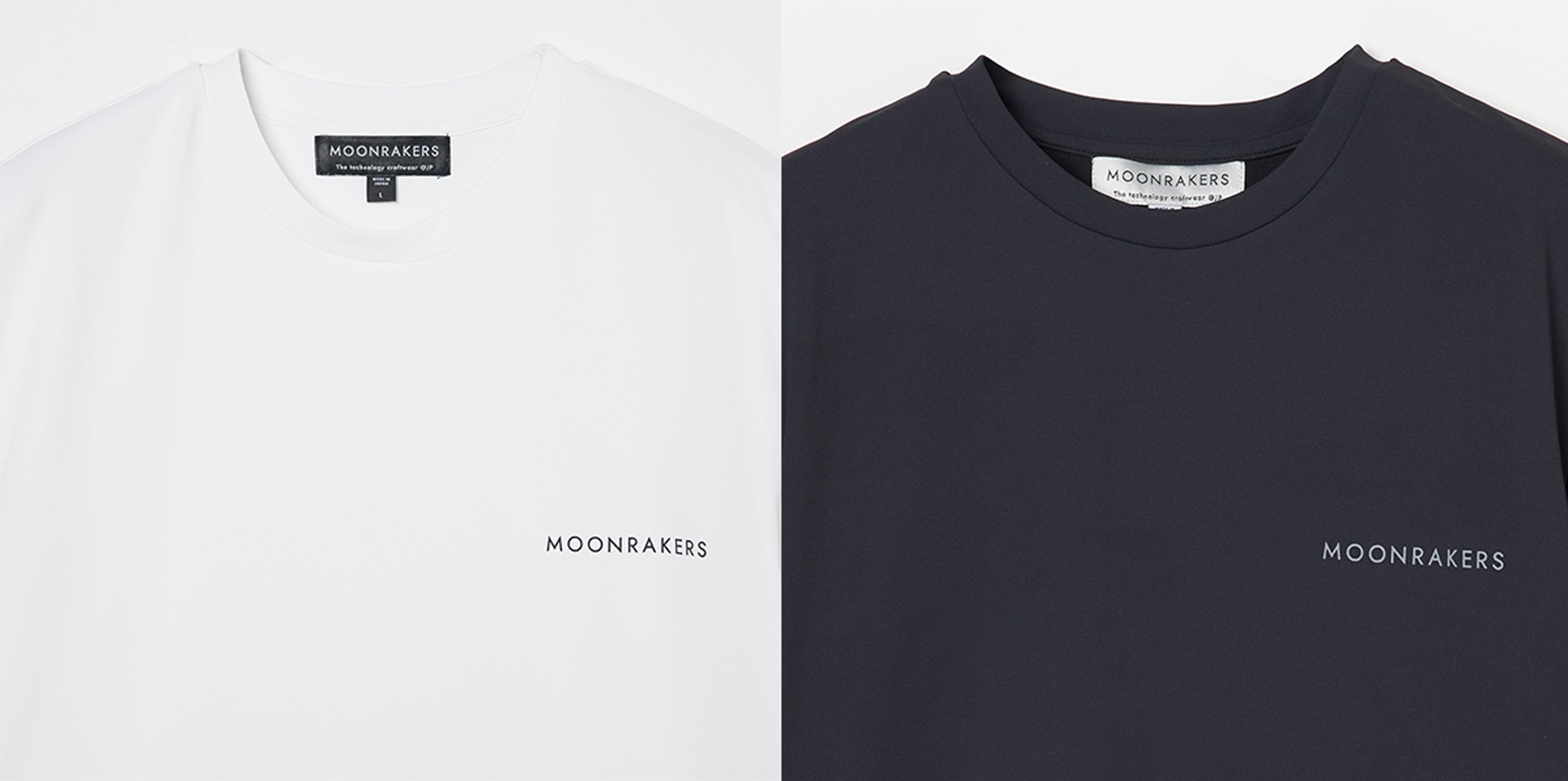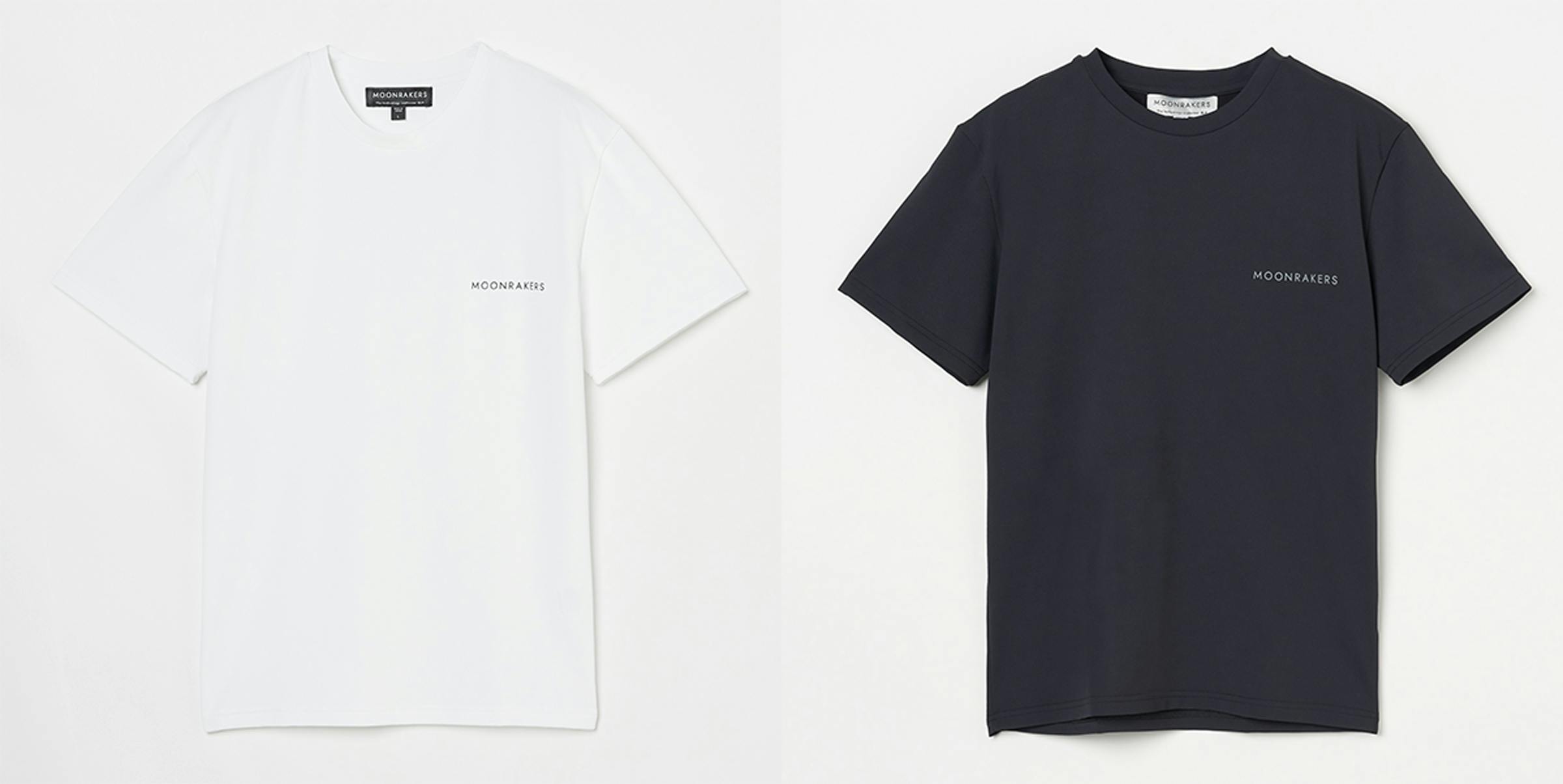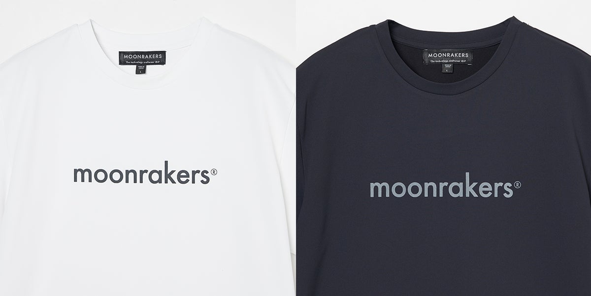 「無地」はシンプル過ぎて使いにくい・・・とのご要望から作成したプリントTシャツは、白・黒の2色に「MOONRAKERS」ロゴを配したシンプルなスタイルの2種類を用意しています。