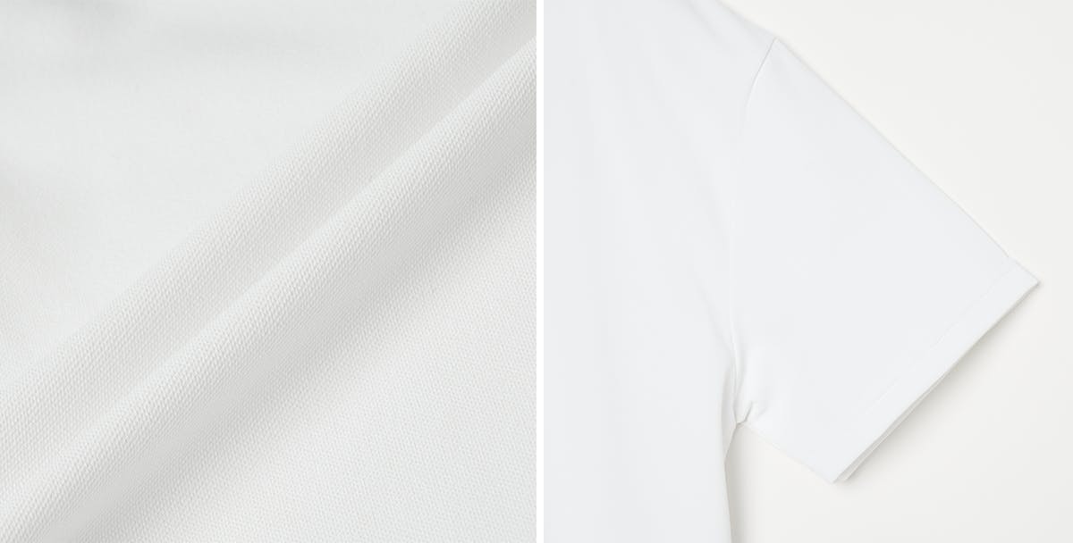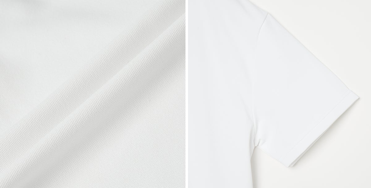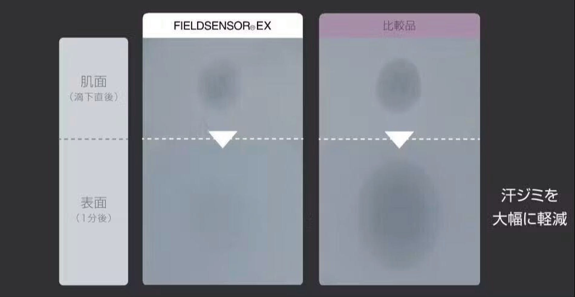 (2)汗ジミ防止:糸の特殊な構造による光学効果(汗ジミが見えにくい)