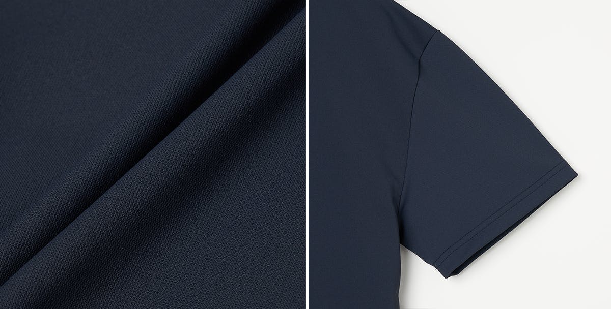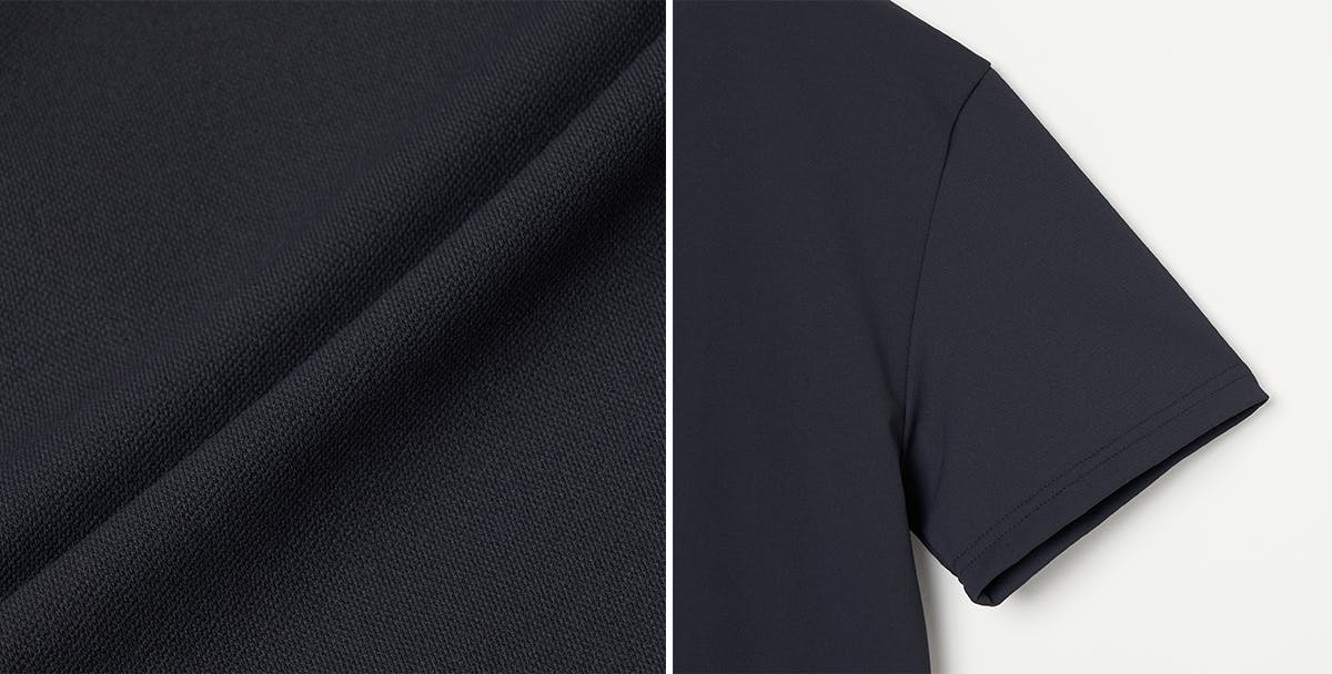 また、高いストレッチ性と耐久性をもつ素材を襟部分にも使用することで首回りの締め付けもなく、だらしなく感じる襟伸びも少ない商品です。