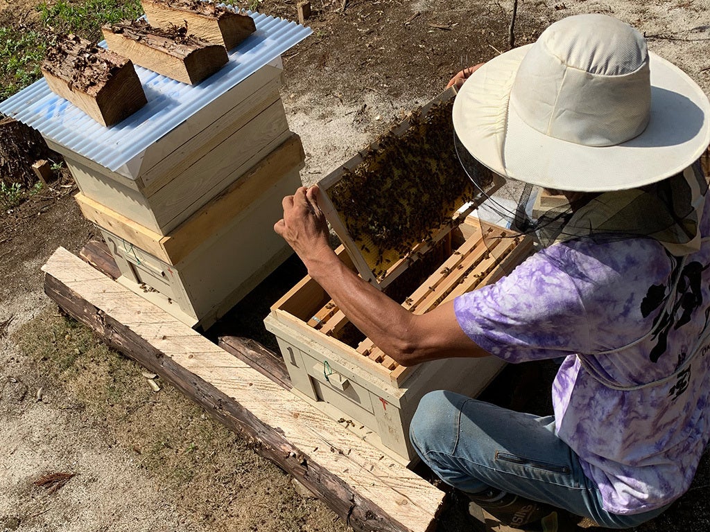 子供のごろ父親が西洋蜜蜂を50群以上も飼育していて、小学生の時から蜜蜂に接する機会が多かったためか人より蜜蜂に対する思いが強いです。脱サラで千葉県で飲食店を約10年間営んでおりましたが、いつかは養蜂をやると思っていた子供の頃の思いが、当時の父親の年齢になって実行できるようになりました。