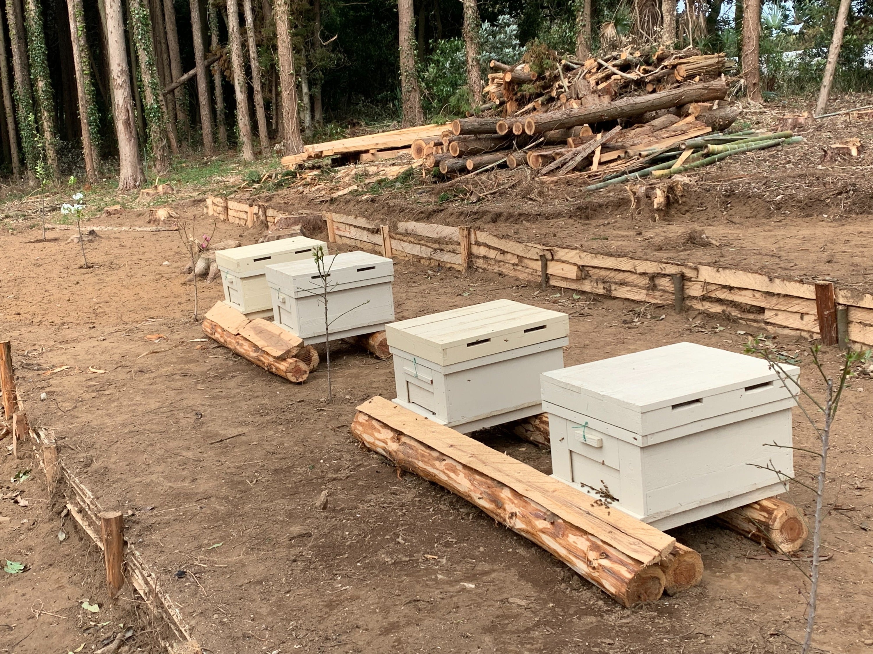 昨年、今まで営んでいました飲食店はコロナの影響の事もあり、やむを得ず閉店し、茨城県鉾田市に移住しました。近くの知人の土地(杉の森、約1200坪)を借り、現在、一人で伐採からはじめ、土地を耕し花の種を蒔いて、蜜源になる果樹や木を植えるなど、毎日養蜂場造成に汗をかいております。今の時点で、約400坪ほど伐採し、蜜蜂を飼育できるように造成し、現在6群の西洋蜜蜂の飼育を始めました。