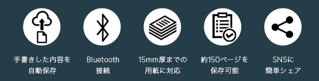 ※"B-Tablet"本体には書いた内容次第ですが、約100~150ページ分の内容を保存可能です。