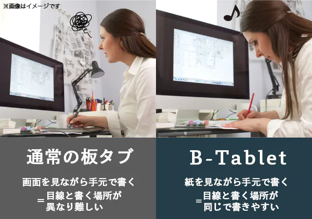 "B-Tablet"はパソコンと接続し、ペンタブとしても使用可能です。