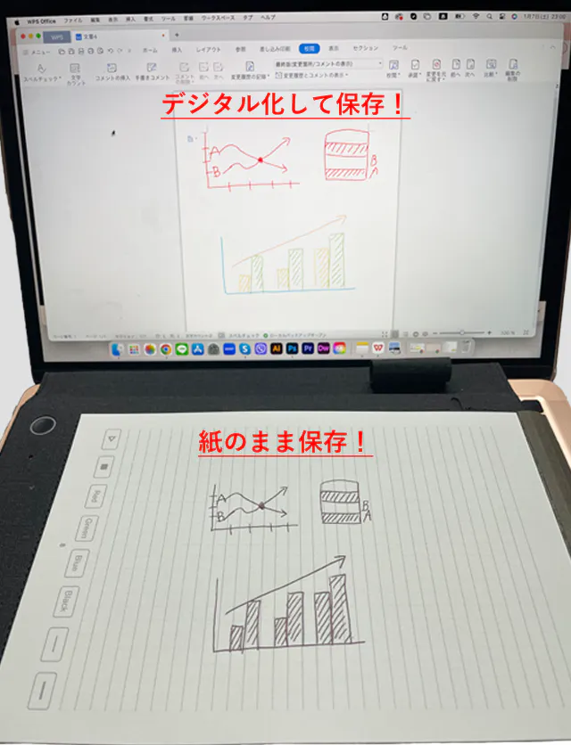 ②書いた内容を手書きでも残せる点 が優れています。