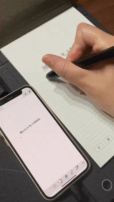 使い方はとても簡単。タブレットの電源を入れ、お好きな紙をタブレットの右側にセットし、専用ペンで紙に手書きするだけです。