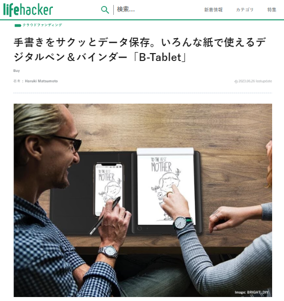 6月29日に、Lifehackerで「紙ノートの手書きメモを瞬時にデジタル化 B-Tablet!次世代のテレワークサポートツール!」を紹介して頂きました!