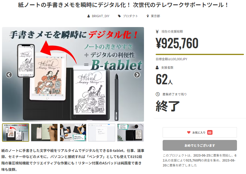 プロジェクト開始から56日目で62人もの支援者の方々よりご支援を頂き、無事プロジェクト終了を迎えることが出来ました。