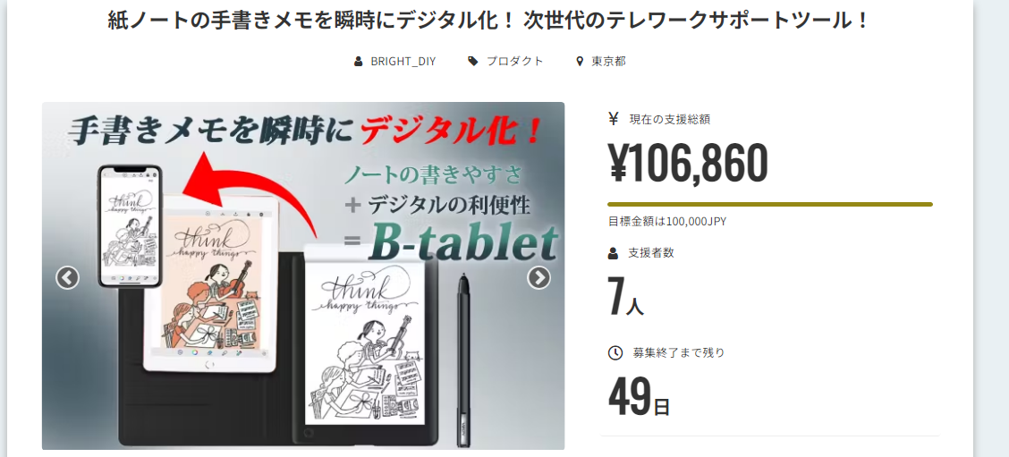 皆様、こんにちは!Brightチームです。お世話になっております。今日は【紙のノートに手書きした文字や絵をリアルタイムでデジタル化できる B-tablet】を紹介して頂きます!最先端のテクノロジーが生み出した新たなデジタル体験が、「B-Tablet」です。この革新的なデバイスは、パソコンとの接続によりペンタブレットとしても活用できます。普通のペンタブレットとは異なり、B-Tabletなら手元を見ながら書くことができます。つまり、手書きの自由さを楽しみながらデジタル作業ができるんです。イラストレーションやフォトショップなどのクリエイティブな創作活動から、オンライン会議の際のホワイトボードツールまで、あらゆるシーンで大活躍すること間違いありません!そして、B-Tabletなら手書きのまま残すことができます。手書きならではの表現力や個性をデジタル上でも保持できるんですよ。これによって、アナログとデジタルの最適な融合が実現します。さらに、パソコンとの接続は超簡単です!付属のケーブルを使って、Windows 7以上やiOS 10.14以上、AdobeシリーズやMicrosoftシリーズの対応環境に簡単に接続できます。B-Tabletには専用のボールペンもセットで付いています。これを使えば、まるでマウスのように直感的にパソコンを操作することもできます。B-Tabletは、手元での直感的な手書き体験とパソコンとのシームレスな連携が魅力の一つです。クリエイティブな活動だけでなく、ビジネスの効率化にも大いに役立つこと間違いなしです。手書きの魅力を生かしながら、デジタル作業を進めたい方には絶対におすすめのアイテムですよ!以上、Bright DIYチームでした!興味がある方、是非ご支援よろしくお願い致します。https://camp-fire.jp/projects/view/675232 Brightチームは当プロジェクトをより多くの方へ知って頂きたいと考えております。宜しければ、FacebookやTwitter等のSNSでのシェア・拡散をお願い致します。#brightdiyhttps://www.brightdiy.jp/products/ どうぞよろしくお願い致します。Brightチーム