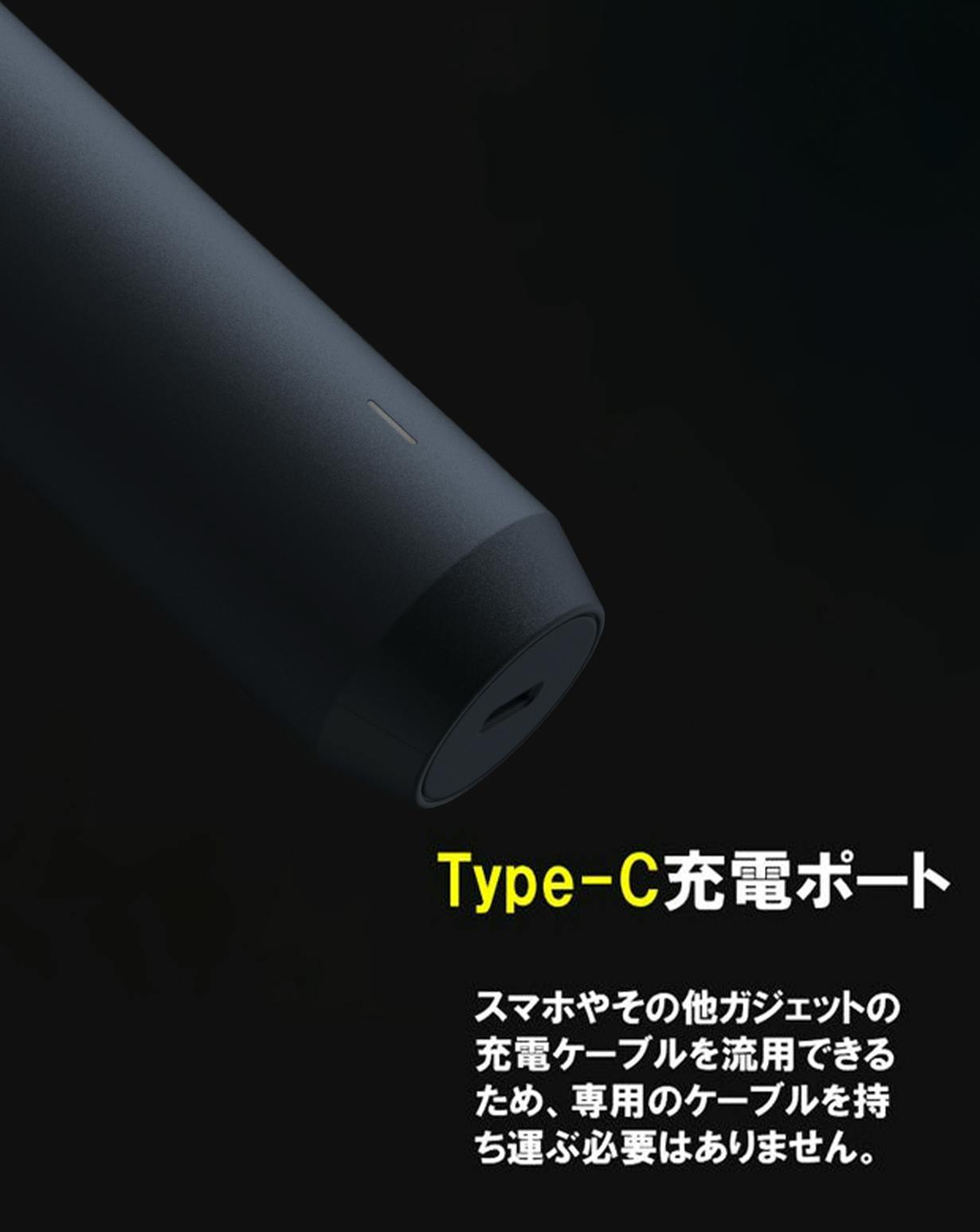 充電端子にはUSB Type-C端子を採用しており、スマホの充電機やケーブルを流用可能でき便利です。