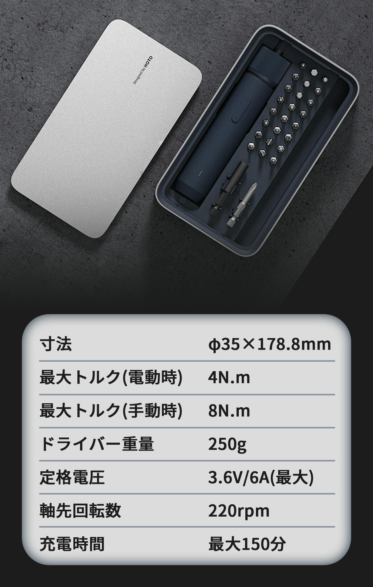 HOTO SET MINIには、電動ドライバーのパワー(トルク)を適切に制御し、ビットやネジの損傷を防ぐ専用のスマートICチップが搭載されています。