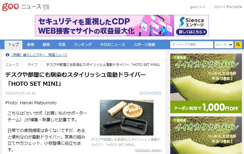 2023/07/29 15:00皆様、こんにちは!Brightチームです。お世話になっております。本日は「ネジを傷めないスマートチップ搭載の電動ドライバー【HOTO SET MINI】」 をご紹介致します。7月25日、gooさんが【HOTO SET MINI】を紹介してくださいました。是非下記のリンクからアクセスしてみてください!https://news.goo.ne.jp/article/gizmodo/trend/gizmodo-272776.html支援購入できるのは残り2日です…まだまだお待ちしております!残りわずかになってしまいましたが、どうか最後まで見守っていただけると嬉しいです〜 クラウドファンディングの状況をお伝えいたします。興味がある方、是非ご支援よろしくお願い致します。https://camp-fire.jp/projects/view/675242Brightチームは、当プロジェクトをもっと多くの方に知っていただきたいと考えております。よかったら、FacebookやTwitter等のSNSでのシェア・拡散をお願い致します。#brightdiyどうぞよろしくお願い致します。Brightチーム もっと見る