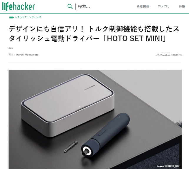 先週、Lifehackerで「ネジを傷めないスマートチップ搭載の電動ドライバー【HOTO SET MINI】」を紹介して頂きました!