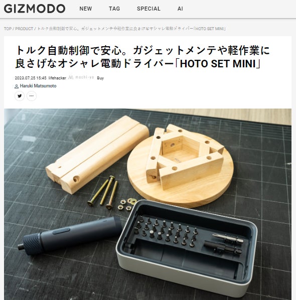 皆様、こんにちは!Brightチームです。お世話になっております。本日は「ネジを傷めないスマートチップ搭載の電動ドライバー【HOTO SET MINI】」 をご紹介致します。先日、GIZMODOさんが【HOTO SET MINI】を紹介してくださいました。是非下記のリンクからアクセスしてみてください!https://www.gizmodo.jp/2023/07/machi-ya-hotosetmini-review-675242.html興味がある方、是非ご支援よろしくお願い致します。https://camp-fire.jp/projects/view/675242Brightチームは、当プロジェクトをもっと多くの方に知っていただきたいと考えております。よかったら、FacebookやTwitter等のSNSでのシェア・拡散をお願い致します。#brightdiyどうぞよろしくお願い致します。Brightチーム