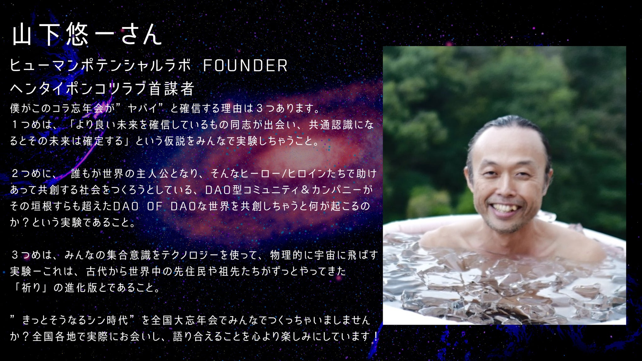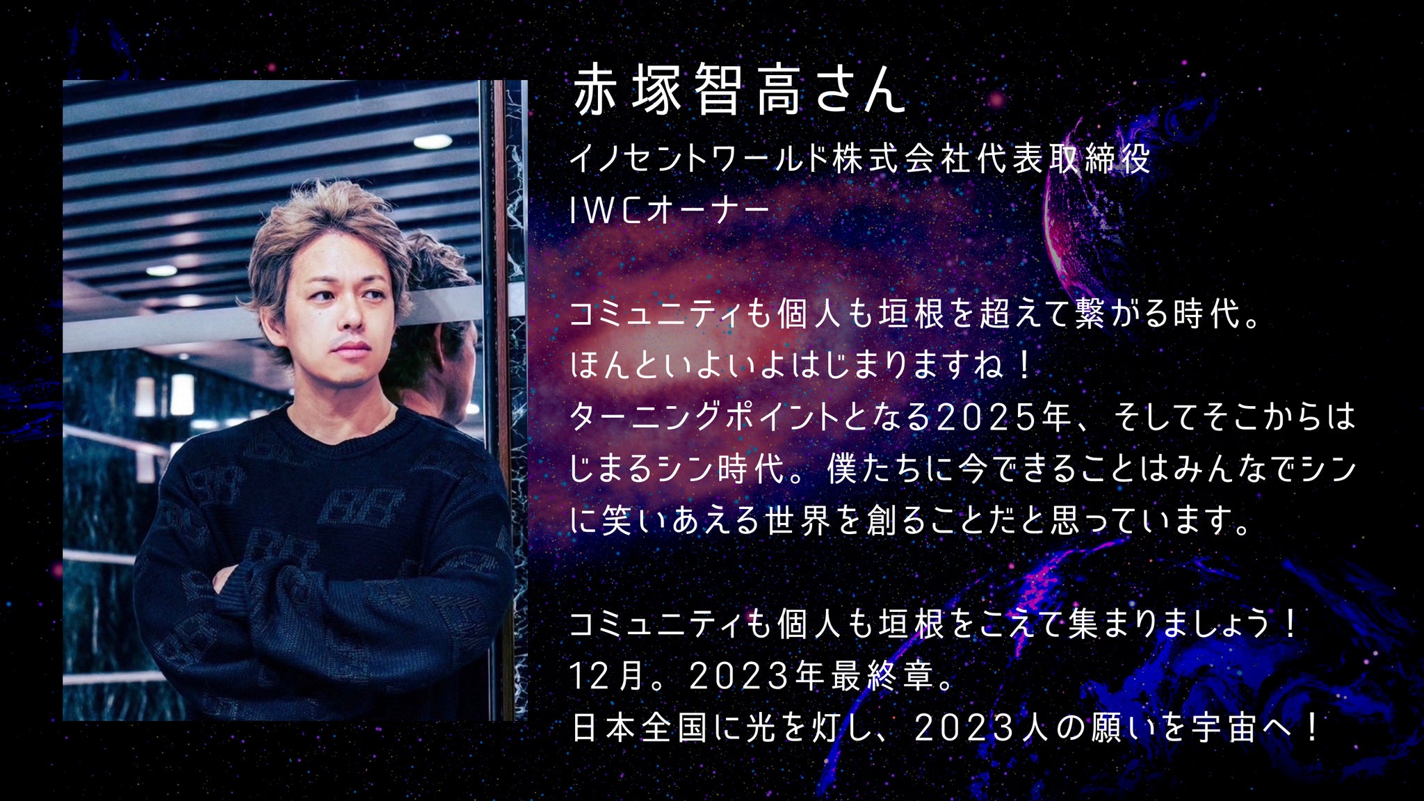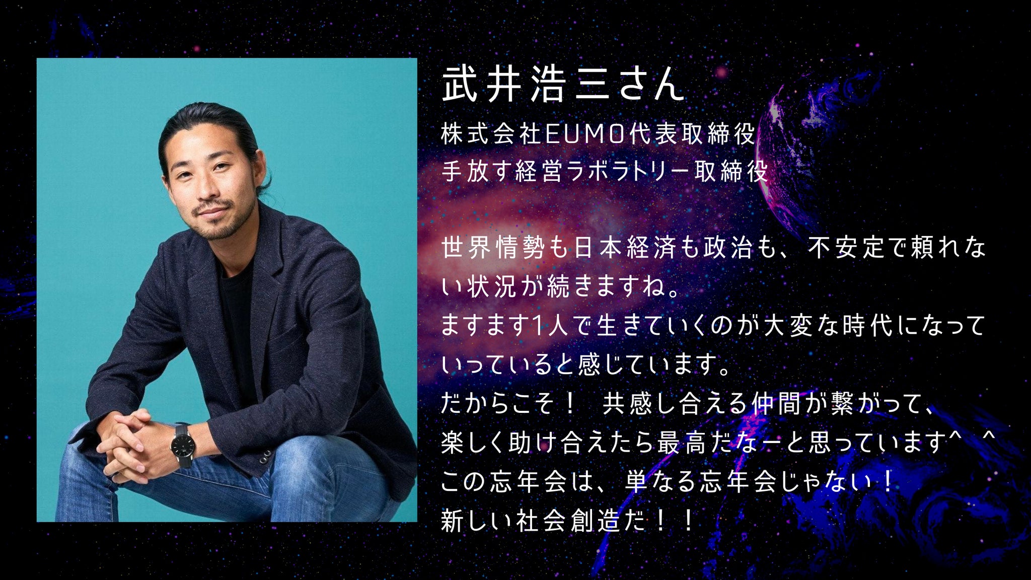「シン時代に向けての祈りを宇宙に打ち上げる忘年会にしよう!!」