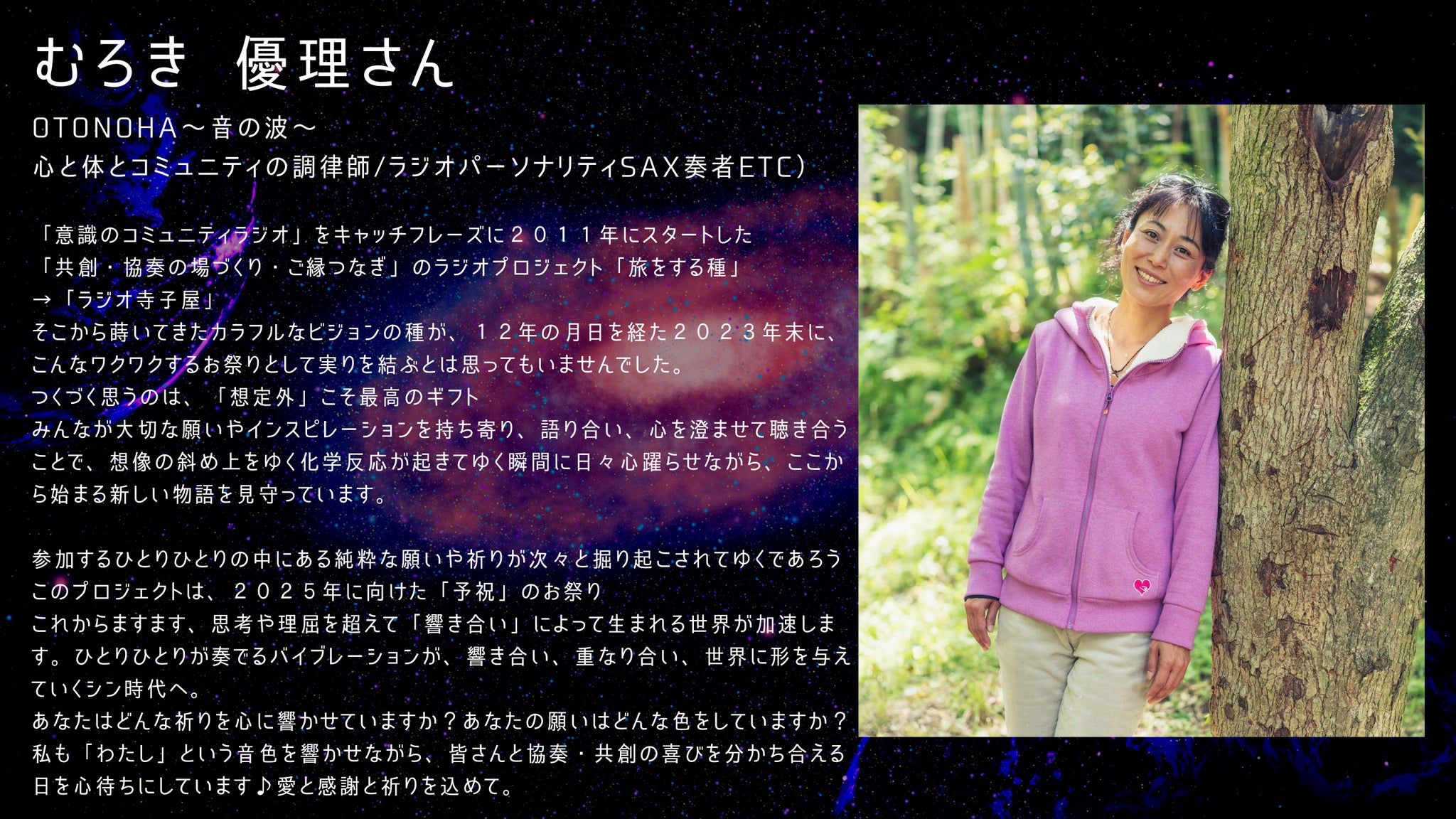 ②そこから見えてきた一人ひとりの願いを祈りとして宇宙に飛ばす の2本柱です!