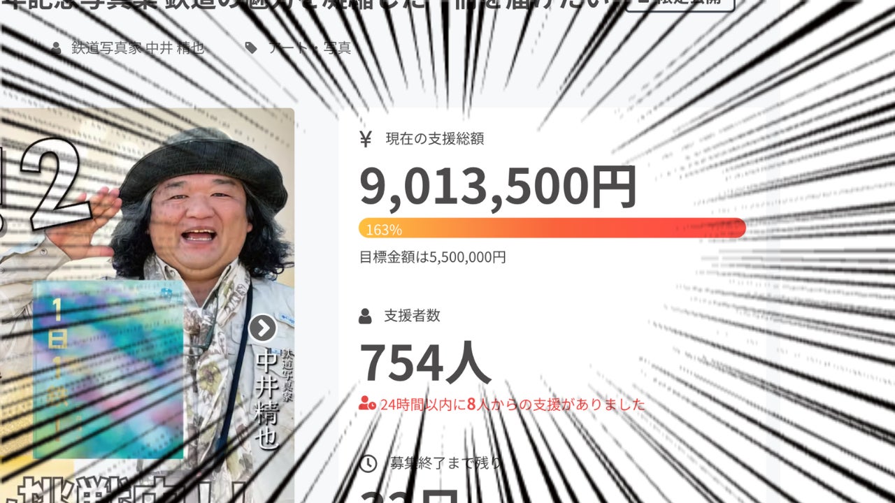 皆さん、こんばんは。驚くべきことに、「1日1鉄!」の写真集プロジェクトが754人の方々に支えられ、支援金が900万円を突破しました!皆様の熱いご支援に、心から感謝申し上げます。現在、皆様に最高の写真集をお届けできるよう、写真の選定やレイアウト作業を着実に進めています。最高の写真集を届けられるよう、これからも精進してまいります。今後とも、皆様のご支援と情報拡散を心よりお願い申し上げます。
