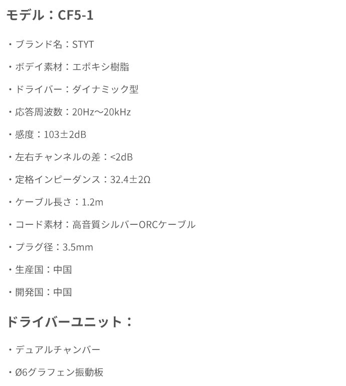 「STYT」は、固定観念にとらわれない斬新なアイデアにより、プレミアムイヤホンの開発に挑戦しました。そして今回は、よりリアルでダイナミックなサウンドと優れた再現性を兼ね備えた、デュアルチャンバーイヤホン「CF5-1」を自信持ってお届けします。