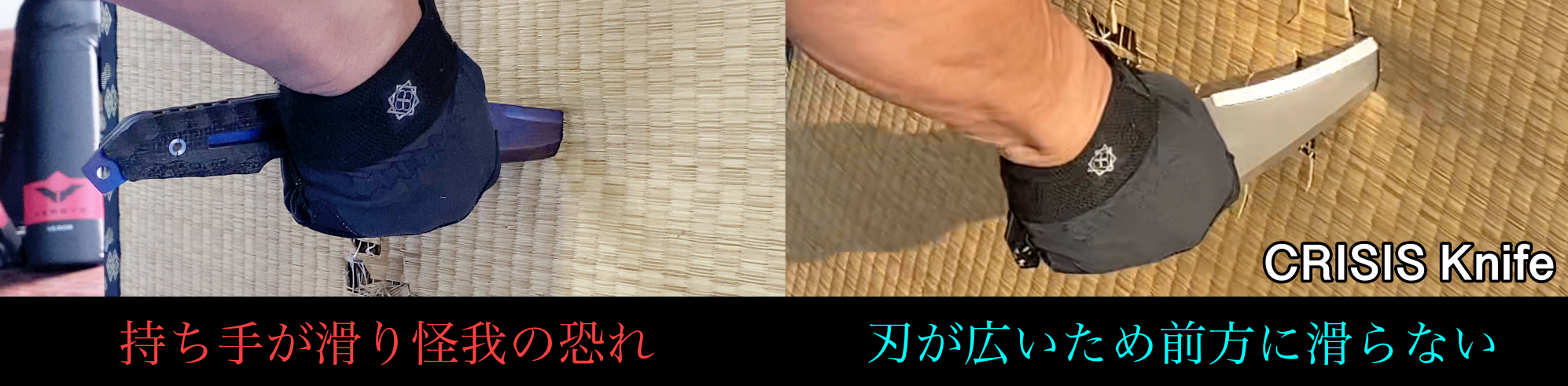 クライシスナイフは諸刃のため、本身(本物のCrisis knife)をご使用になる前に、トレーニングナイフを使用することで事故防止に繋がります。