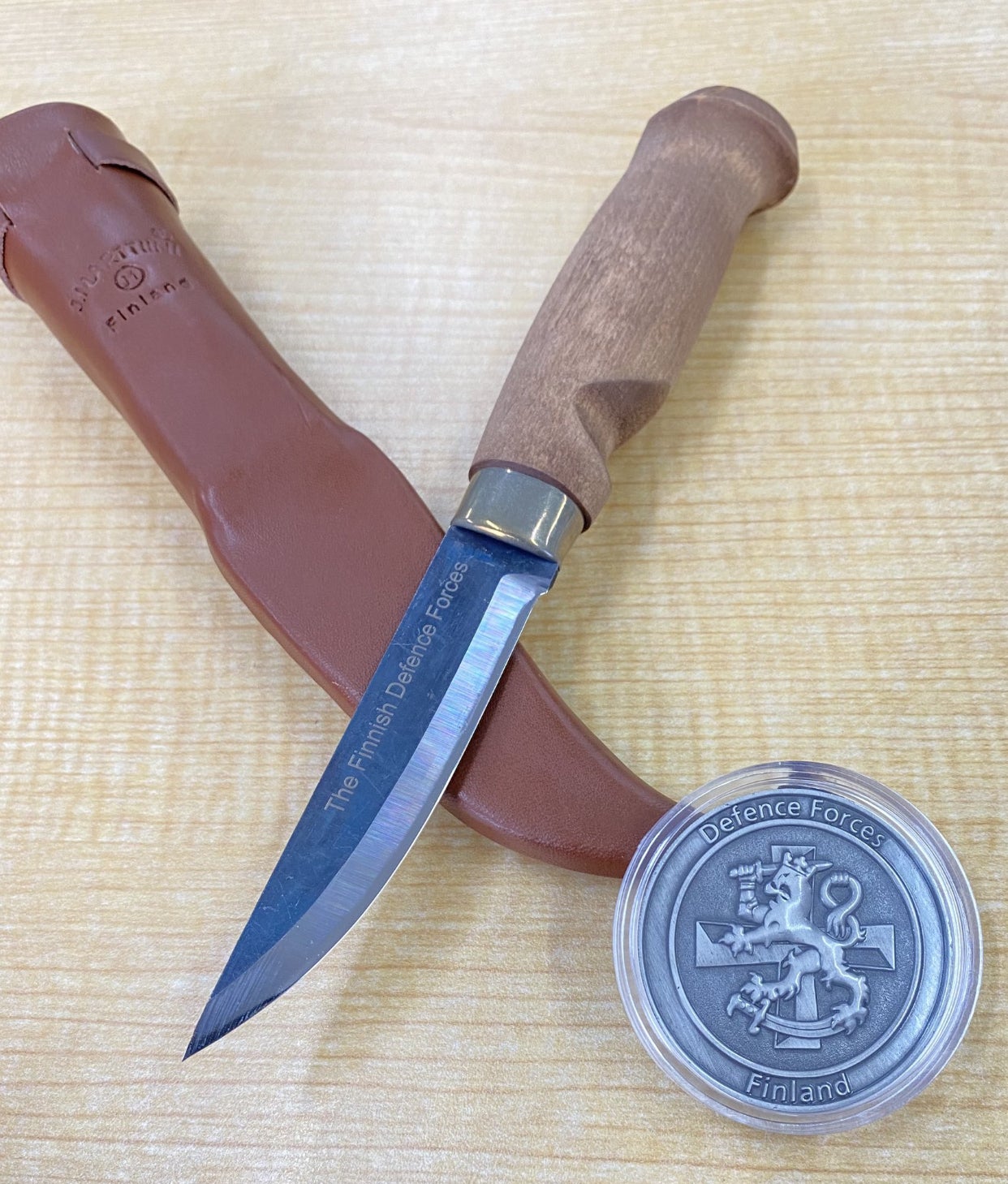 国防に関わる情報交換や弊社訓練内容の説明、施設の見学をされた後、友好の証として、フィンランドのナイフである「プーッコ」を頂きました。