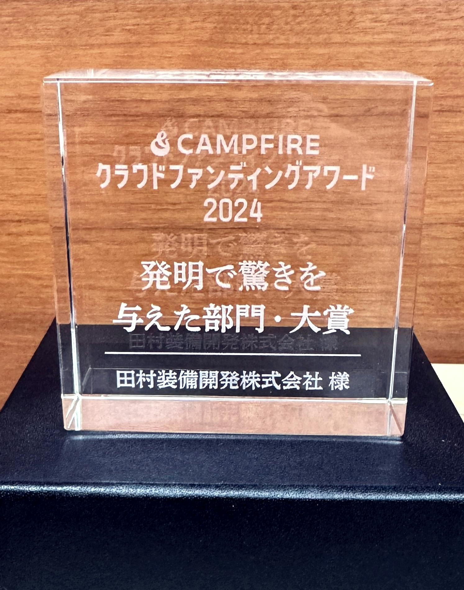 昨年実施したCRISIS 01のプロジェクトにつきまして、「CAMPFIREクラウドファンディングアワード2024 発明で驚きを与えた部門 大賞」を受賞することができました!