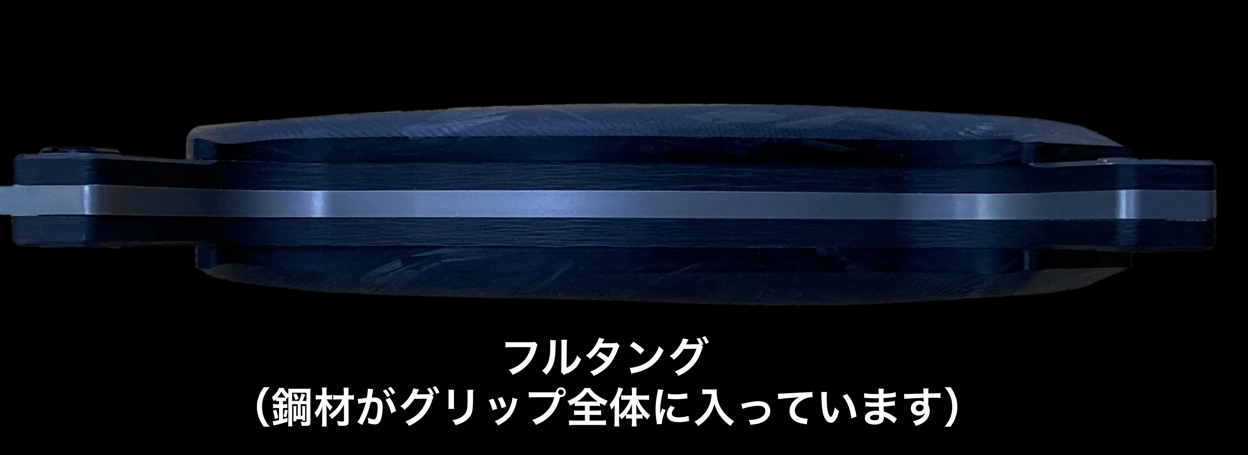 また、全体の強度を増すためにフルタング(最も強度が高いタング構造:ハンドル部分の内側全てに鋼材が挟まれている)で作られており非常に強靭なナイフに仕上がっております。