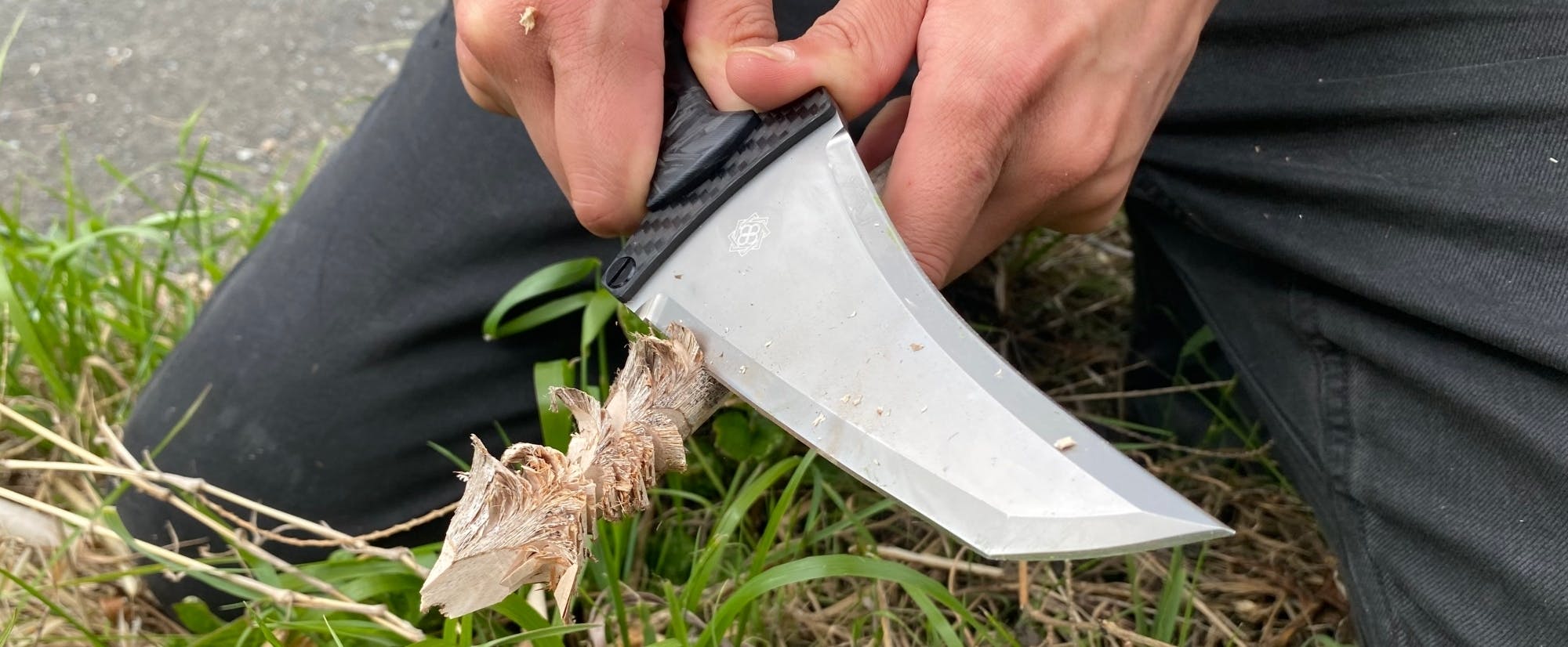 次にASPという鋼材を試しました。こちらも超高硬度のマテリアルです。この刃は私が経験した事の無いほど切れ味の鋭いものでしたが、テスト中に硬い木を突いたことで簡単にポイント(先端)が折れてしまいました。用途によっては素晴らしい刃物になると感じたのですが、今回は出来る限り長く、一生物として使えるサバイバルナイフをコンセプトにしておりましたので、初心に戻り、良い刃物の基本とされている「切れて」「粘りがあり」「長切れし」「研ぎ易く」「錆びない」のバランスを整える事にしました。