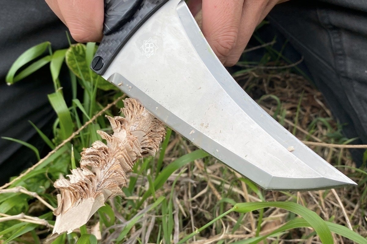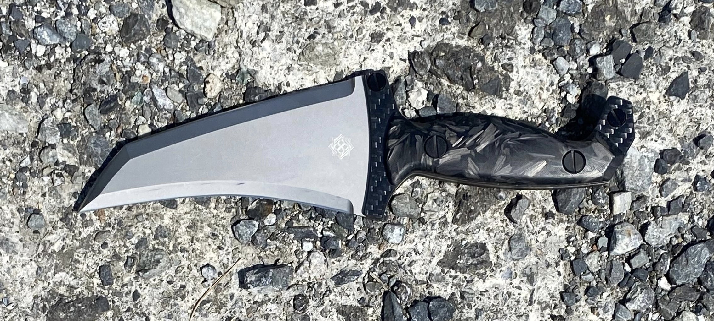開発に1年以上かかりましたが、最高傑作と言って良いほどバランスのとれた高性能ナイフが完成しました。形状が奇抜であり諸刃のため扱いには慣れが必要ですが、使いこなせばとても頼りになるパートナーになると思います。どうぞご期待くださいませ。