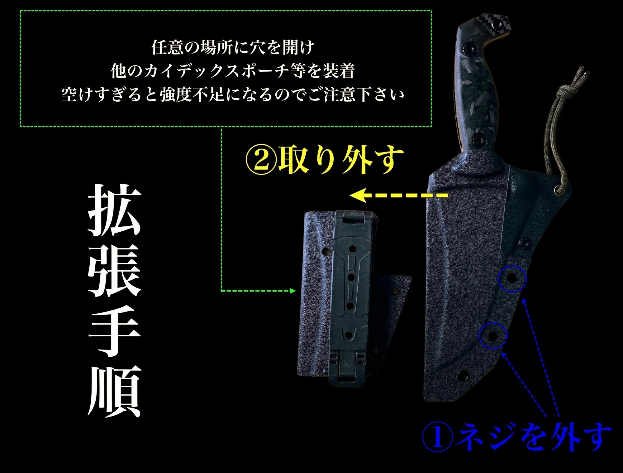 また、カイデックスシースは革やナイロンなどの柔らかいシースに比べ、ナイフ表面に細かな傷が付きやすい性質です。予めご了承ください。