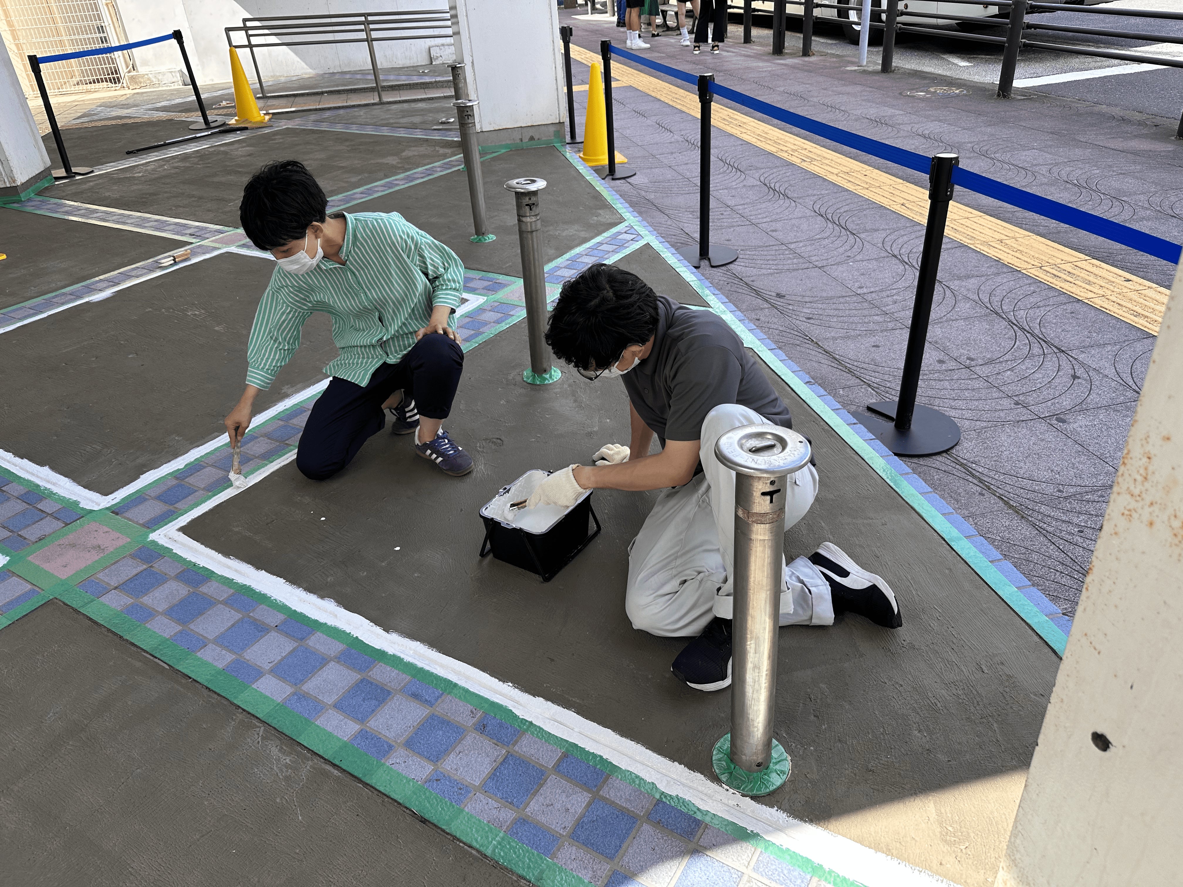 この生まれ変わったFLAT前の床にさらにみんなのアートが加わり、