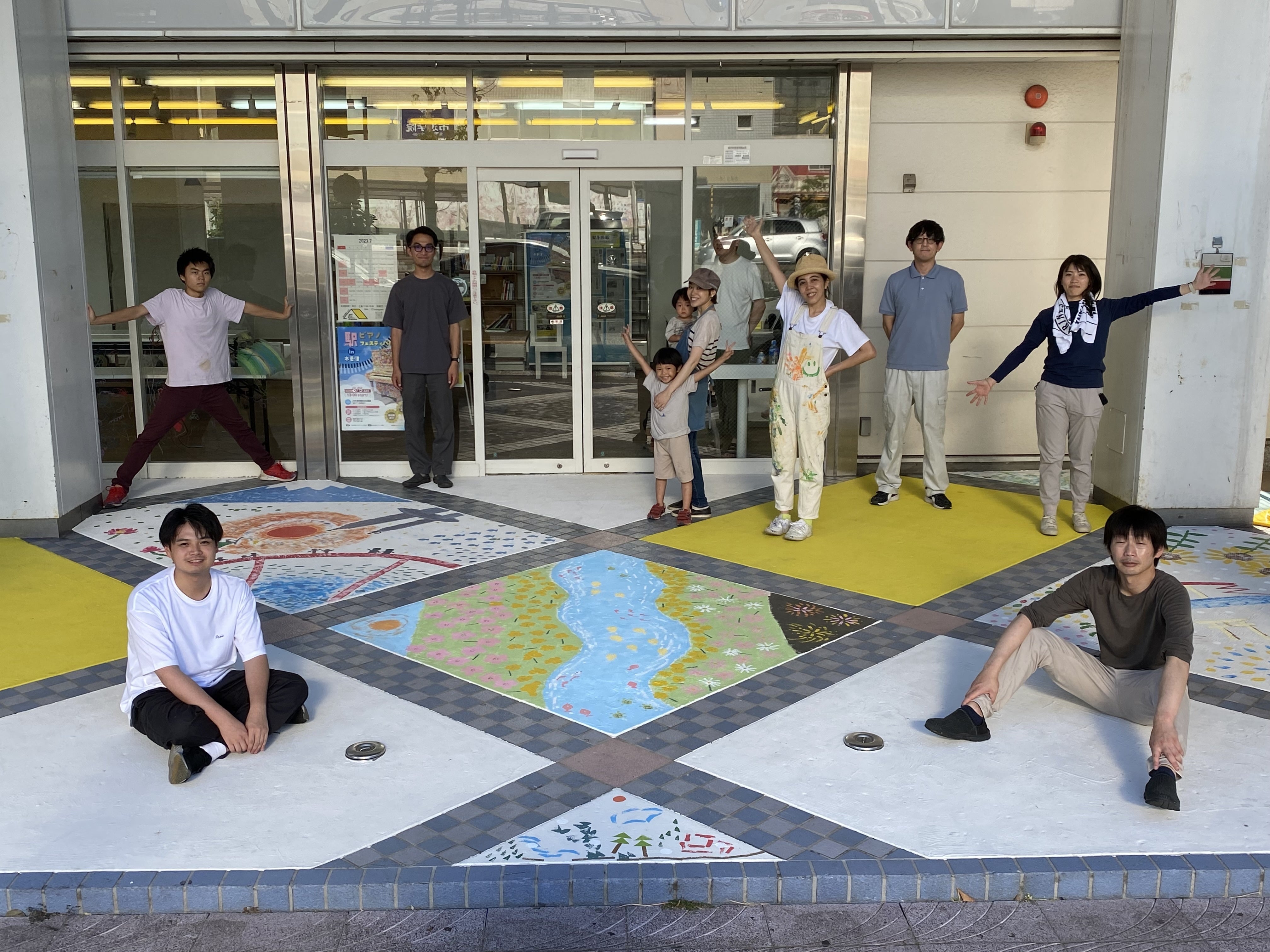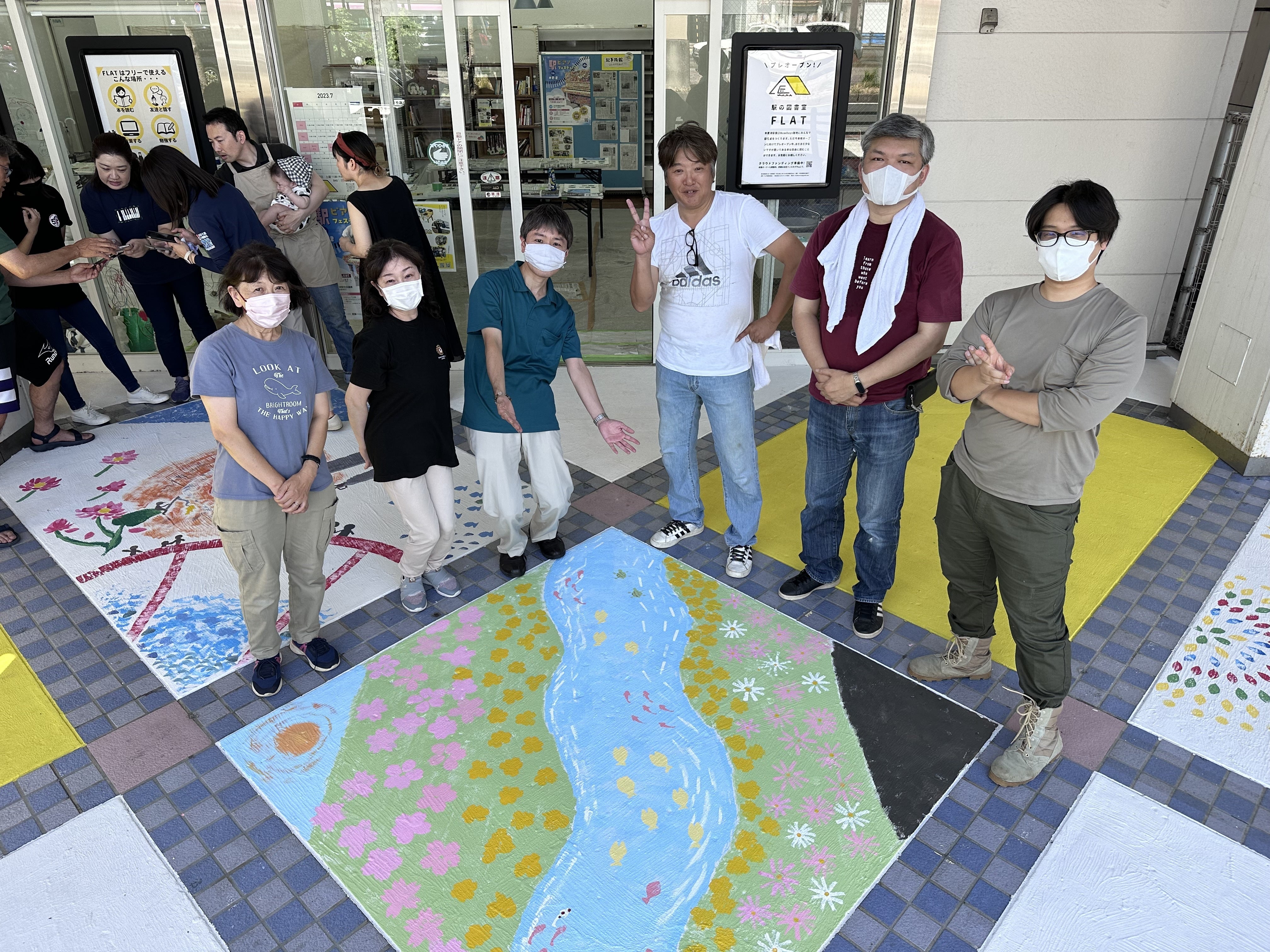 夕方からは図書委員会チームで残りの部分を描きました。エレベーター前に魚がいっぱい!
