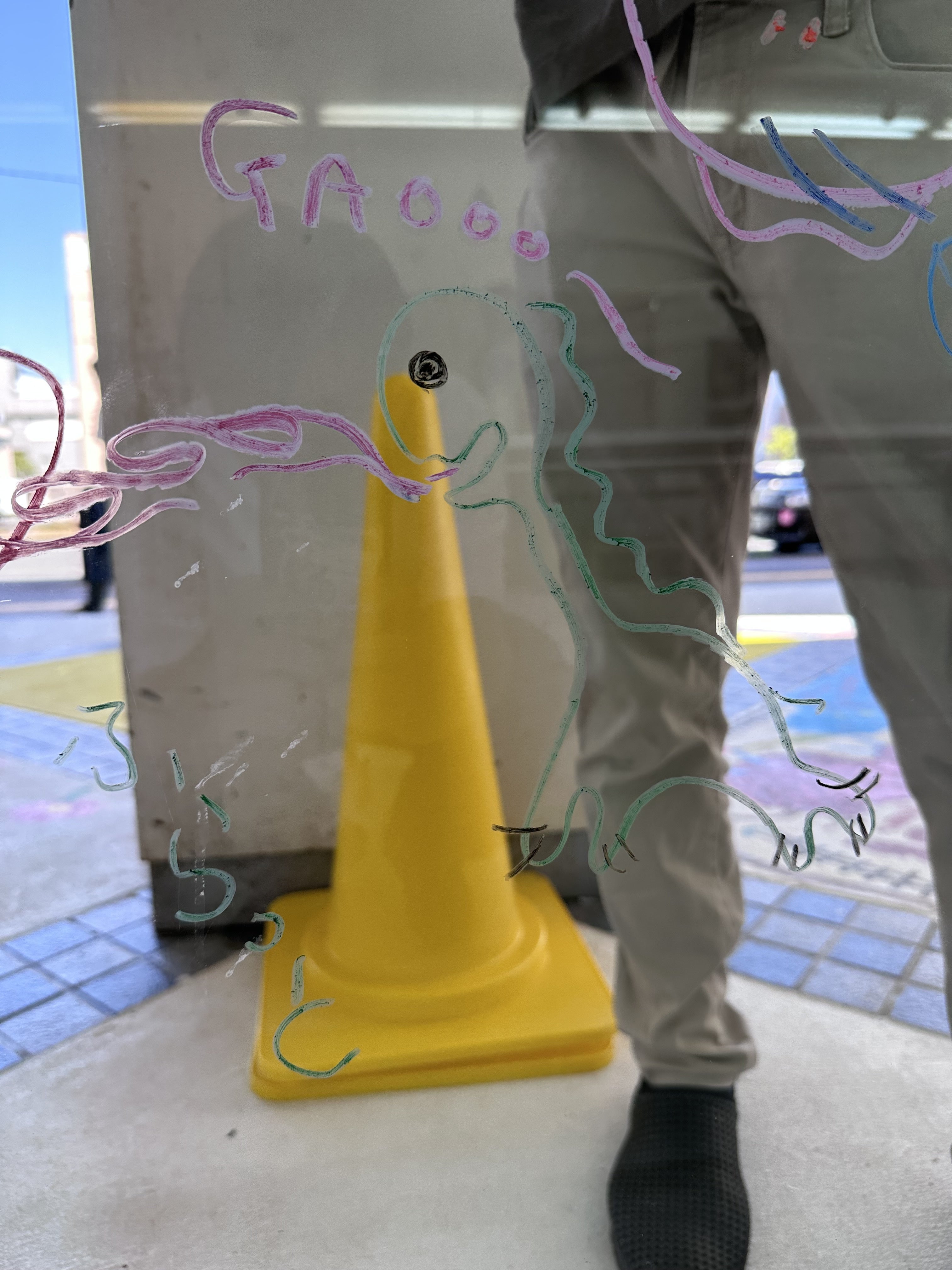 ガラスにもアートが!いくちゃんからキットパス(ガラスに描けるクレヨン)の寄付があったので、是非皆さんも自由に描いて下さいね。