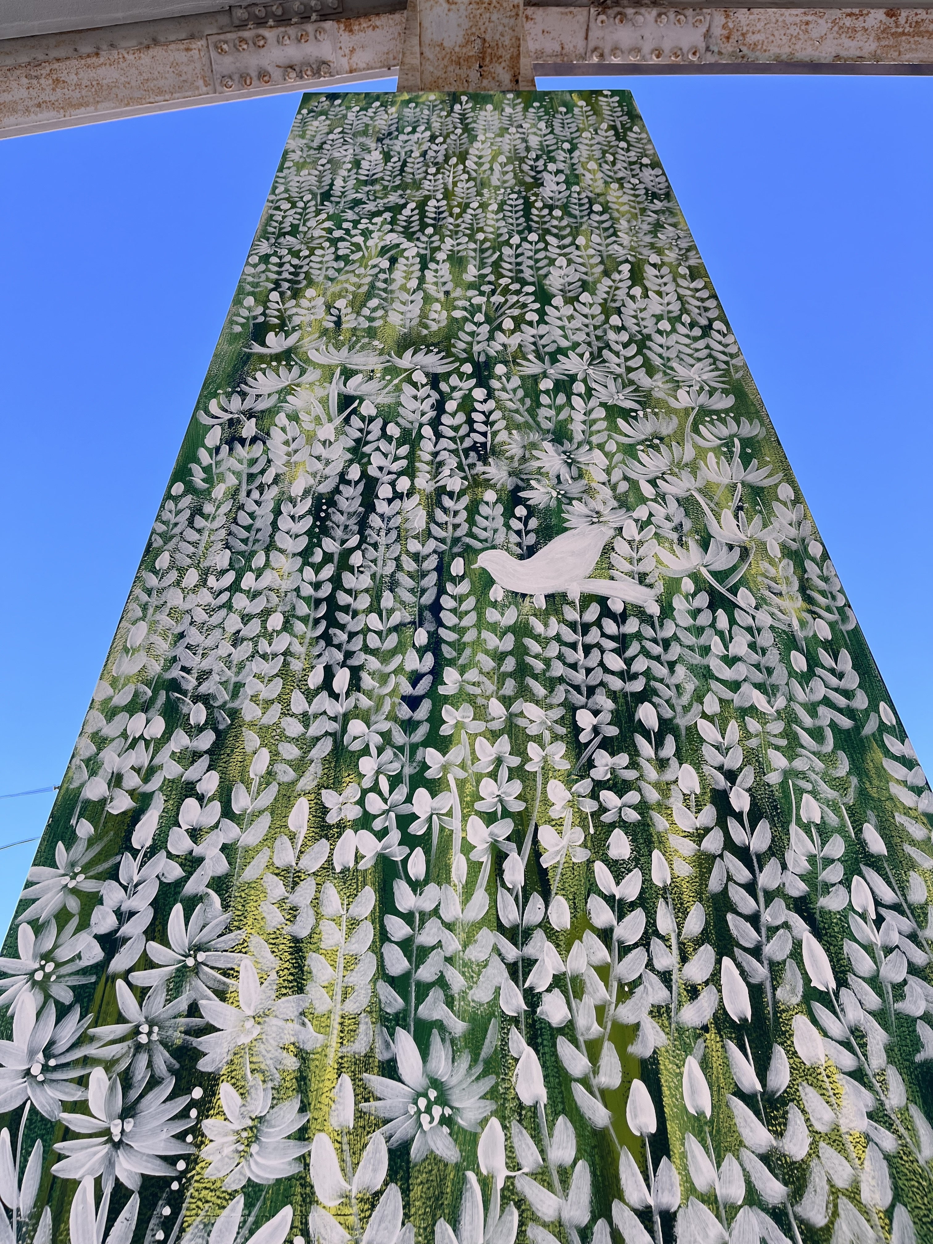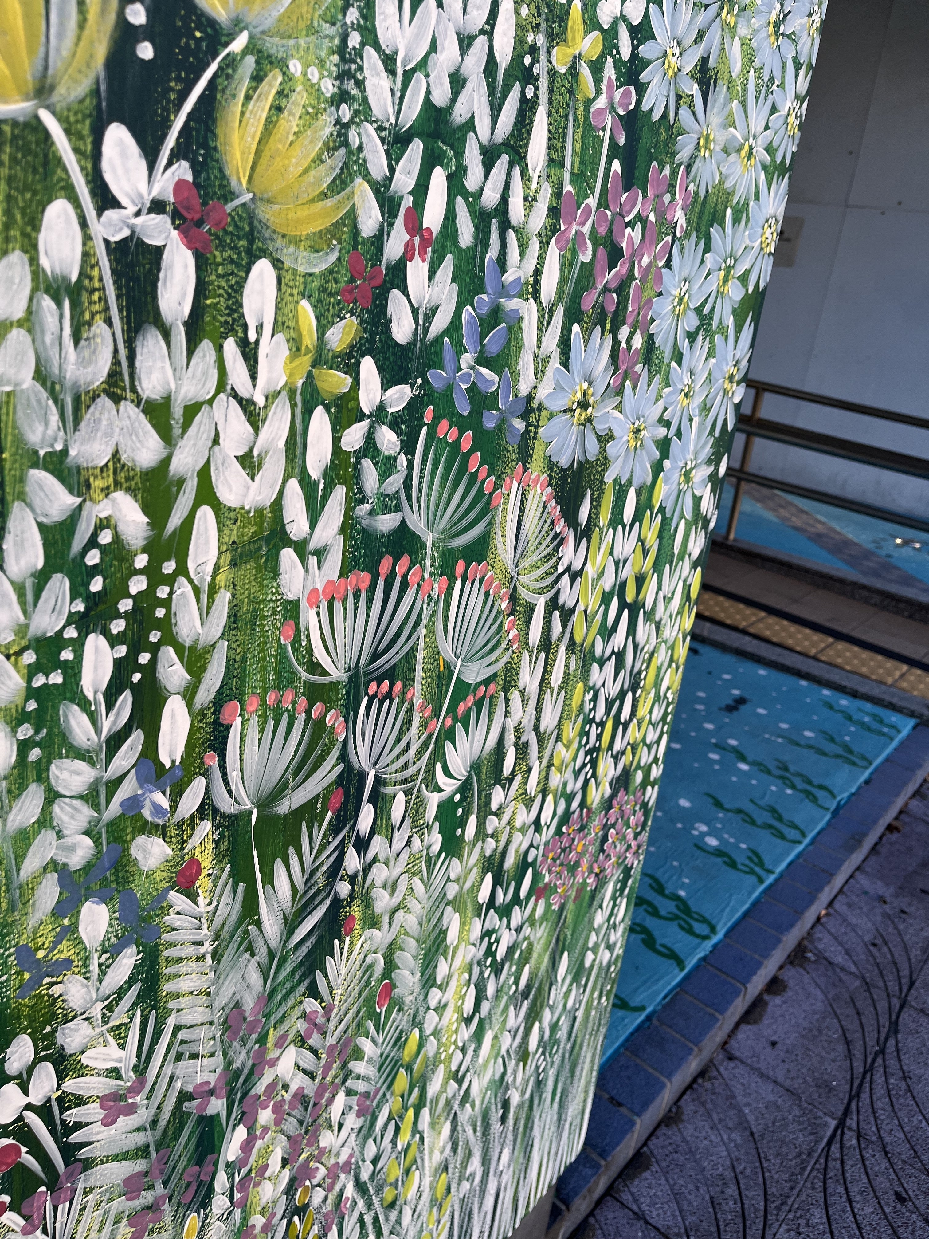 植物のない場所に、植物を描く。それだけで不思議と、雰囲気が変わる。自然の中にいるみたいに、ふわりと身体がゆるむ。アートの力をじんわりと感じました。