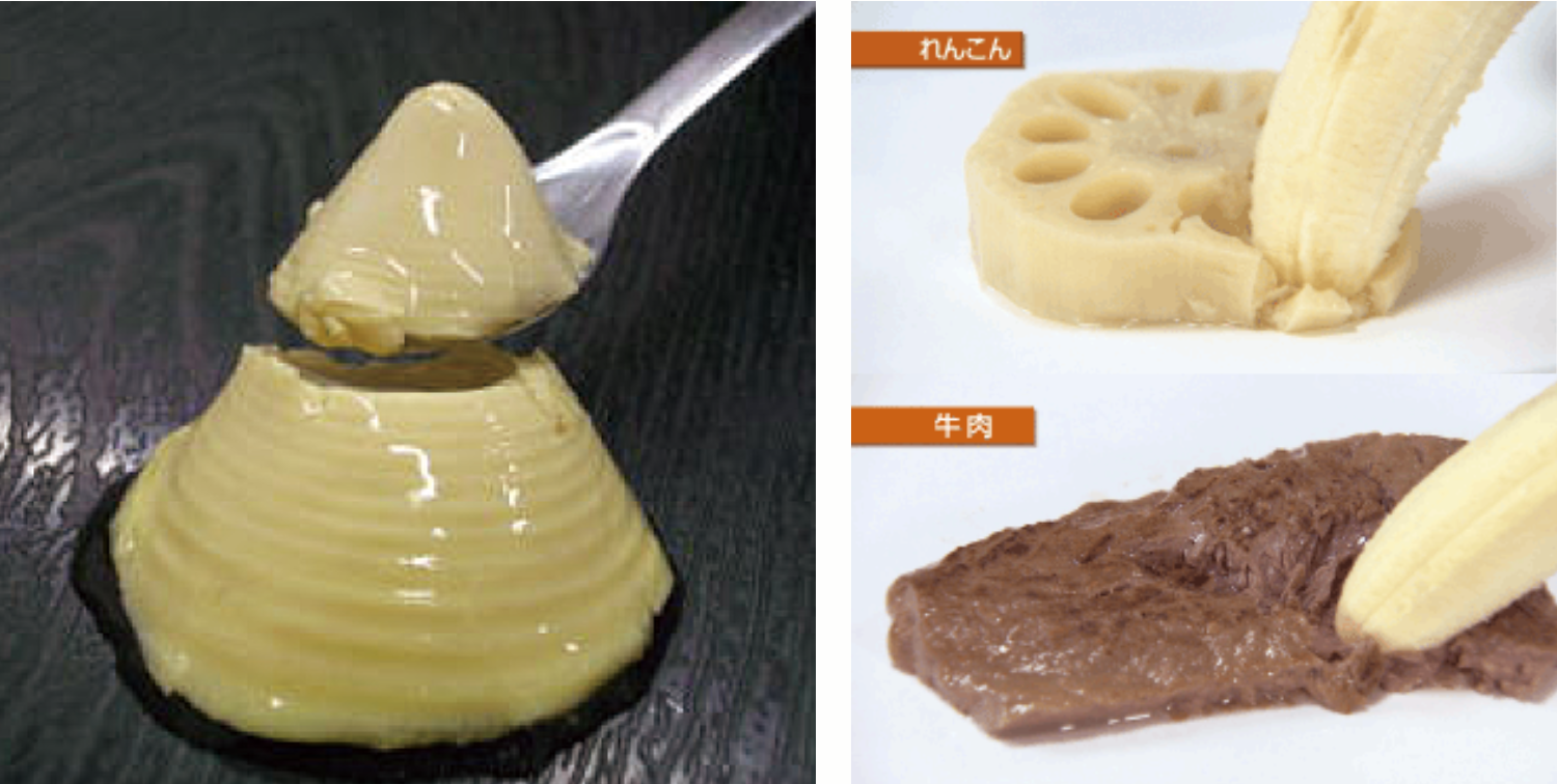 しかしこれだと、本来の食べ物の「形」が失われてしまいます。離乳食や流動食のような液体に近い形状では「食事」には見えず、「美味しそう」と思えなくなります。