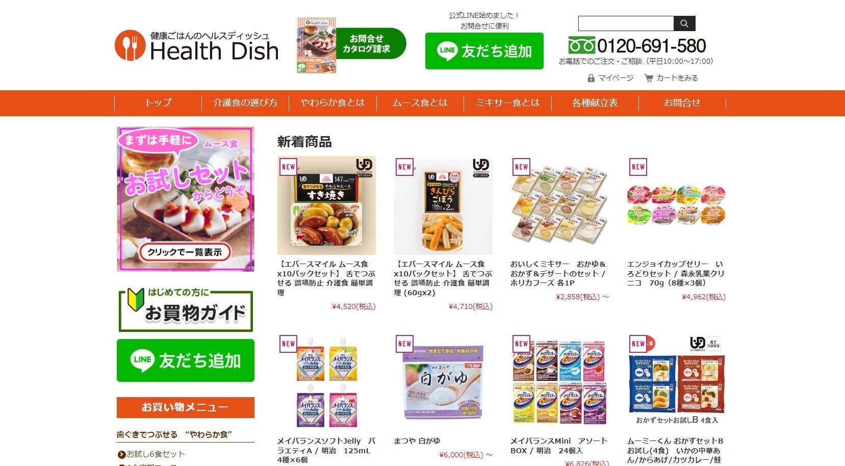 弊社は、2015年に介護食専門通販サイト「ヘルスディッシュ」を立ち上げ、運営・販売を行っています。